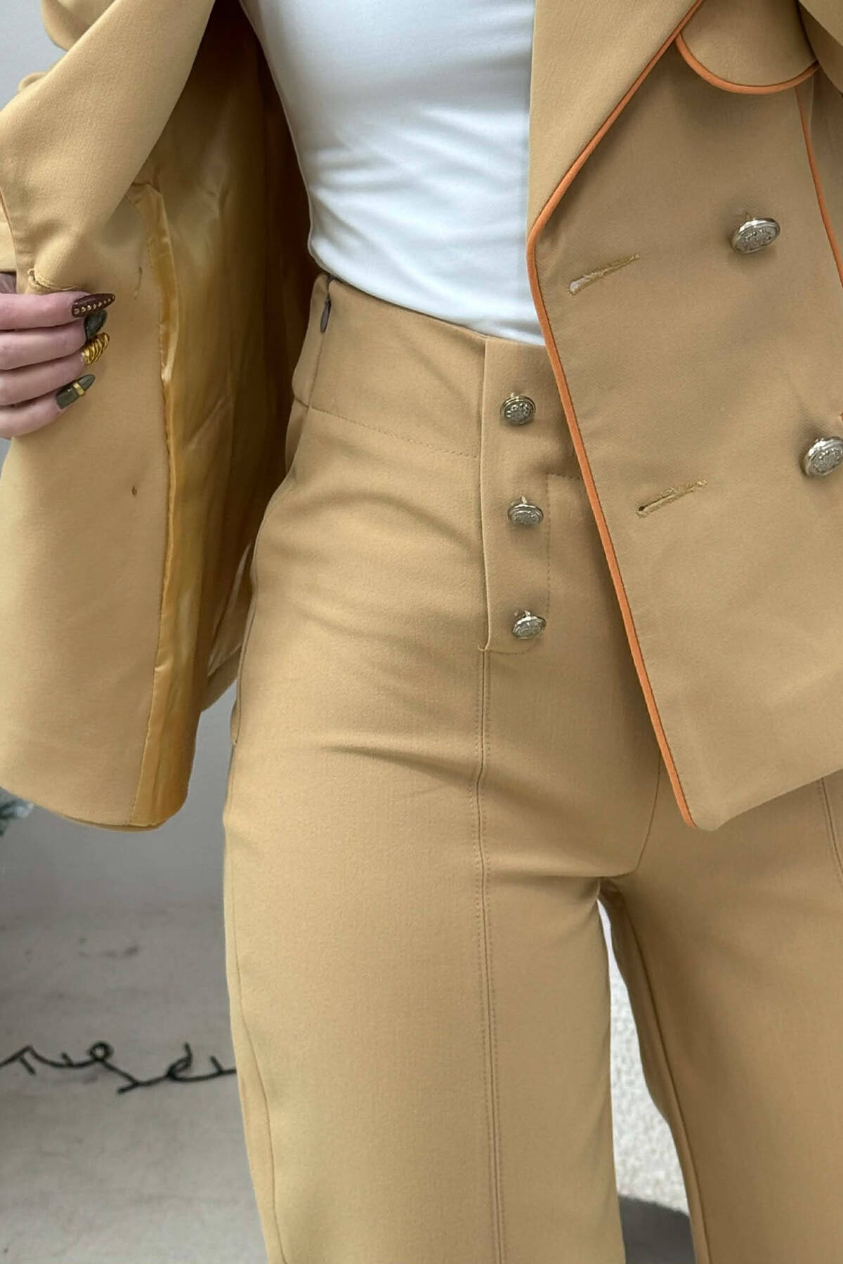 ONE COLOR BUTTONS DETAILS JACKET+TROUSERS WOMEN SET DARK BEIGE/BEZHE ERRET