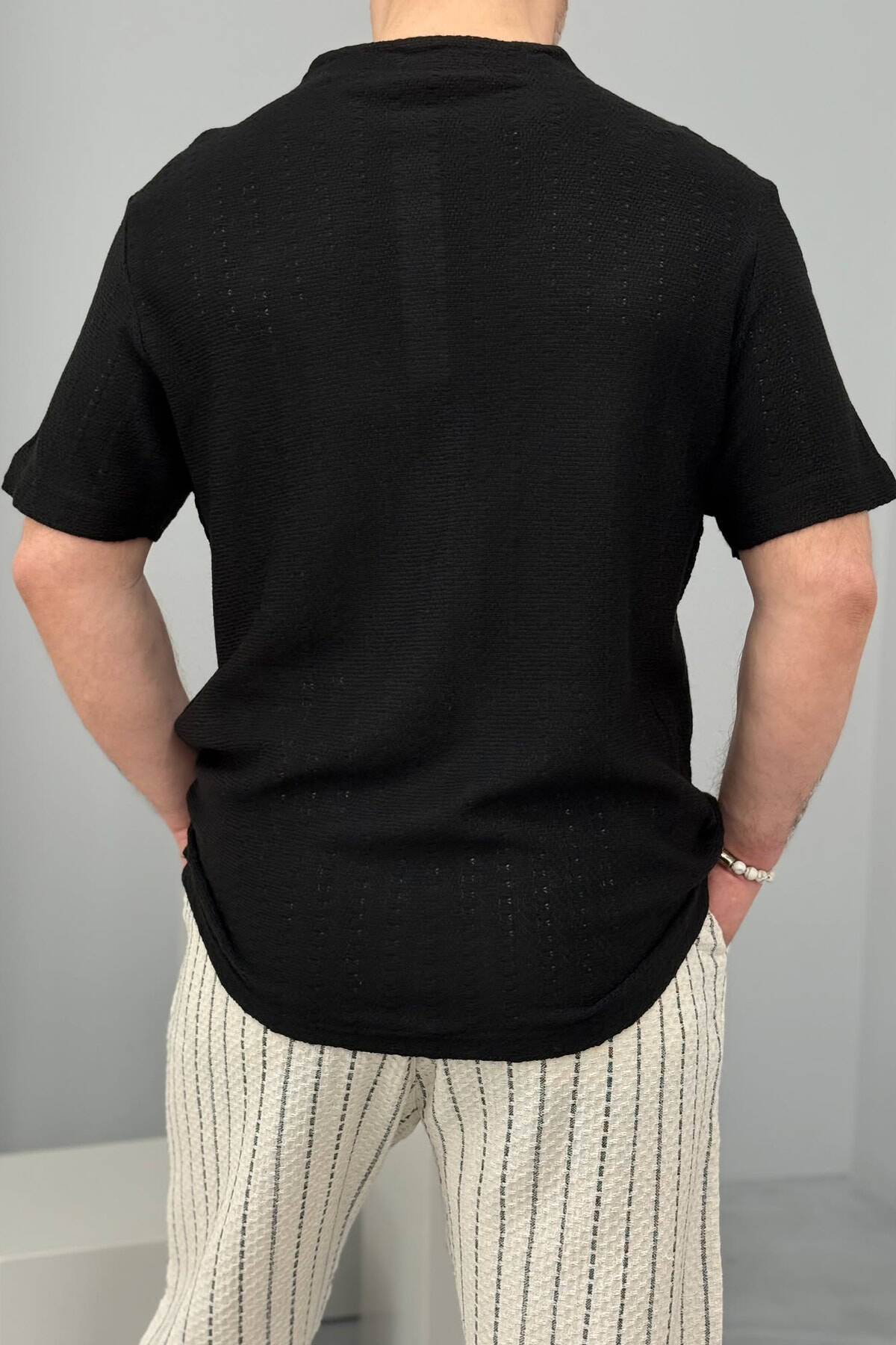 ONE COLOR BUTTONS MEN T-SHIRT BLACK/ E ZEZE