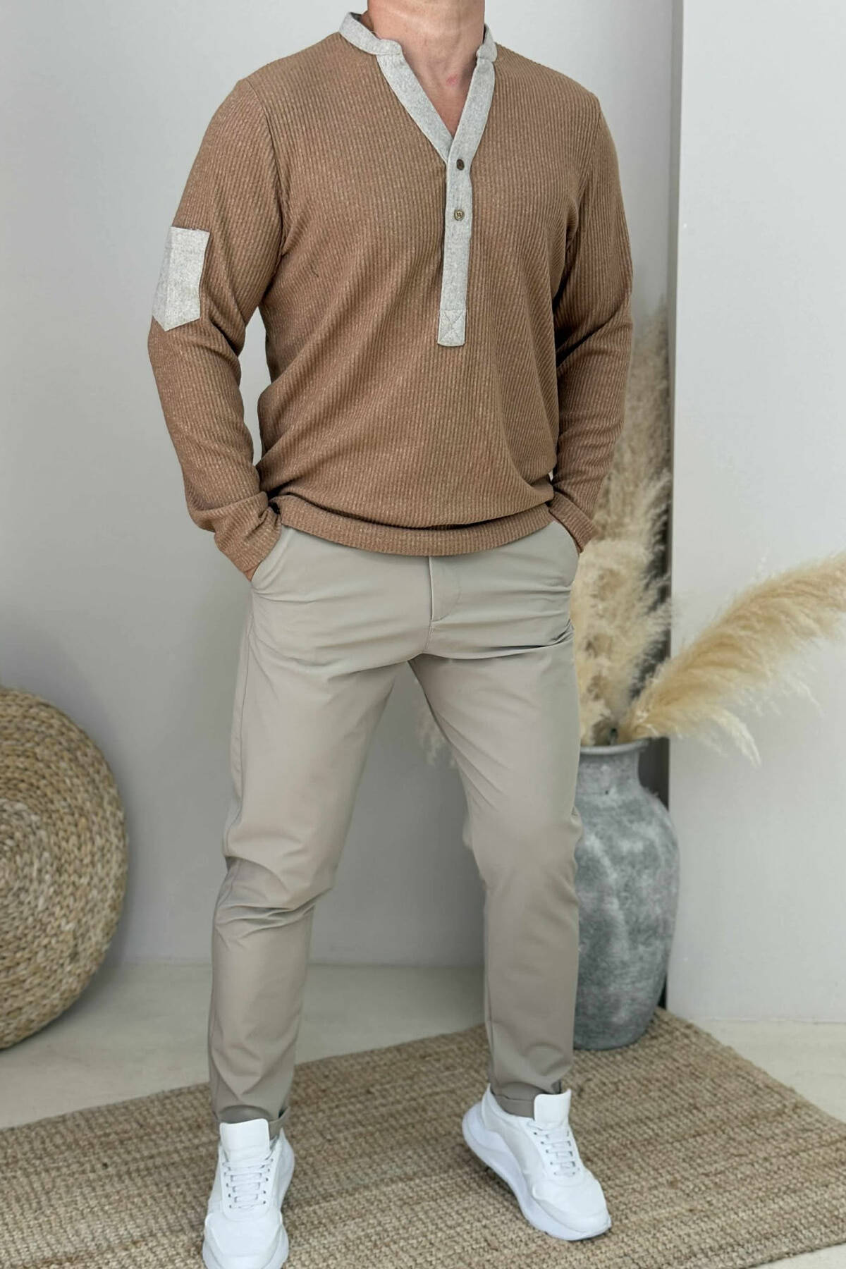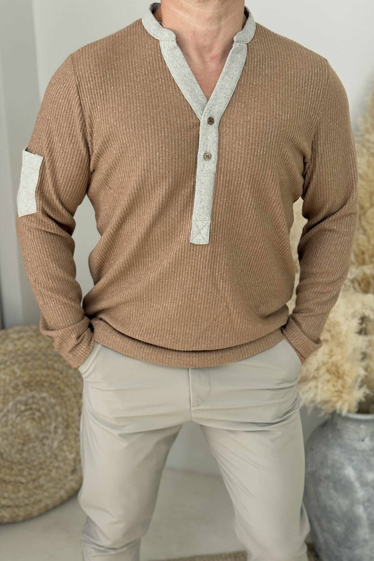 BLUZË NJË NGJYRESHË ME JAKË ME BUTONA PËR MESHKUJ NË NGJYRËN KAFE