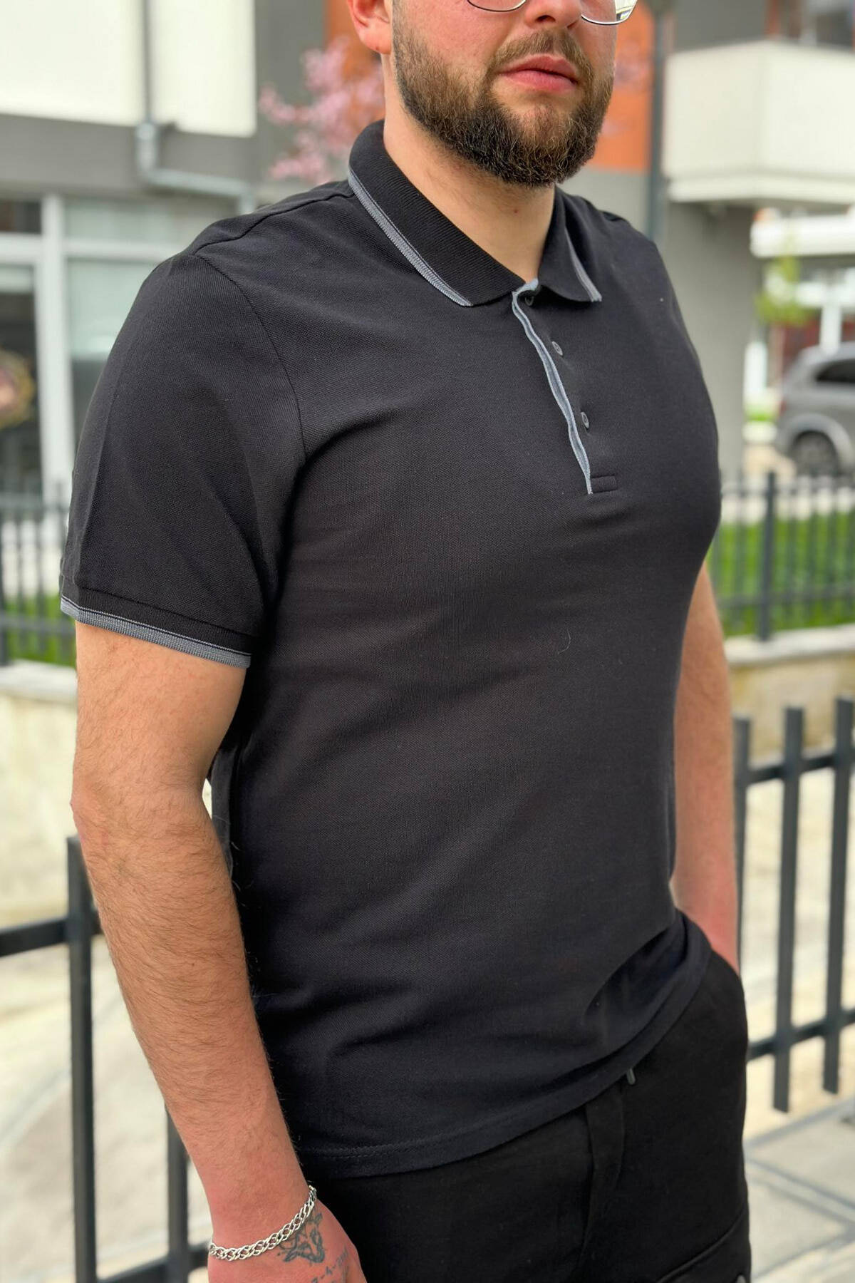Bluze me detajin e kopsave ne jake per meshkuj ne ngjyren e zeze