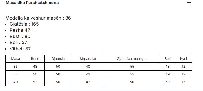 Size chart
