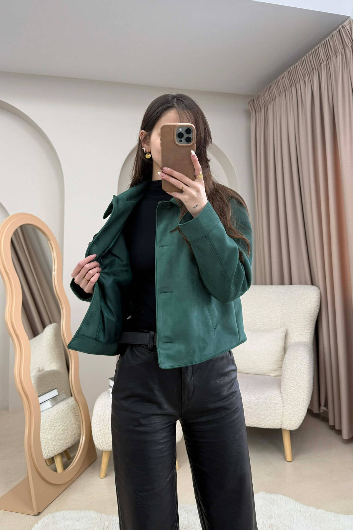 ONE COLOR BUTTONS SUEDE WOMAN JACKET GREEN/JESHILE