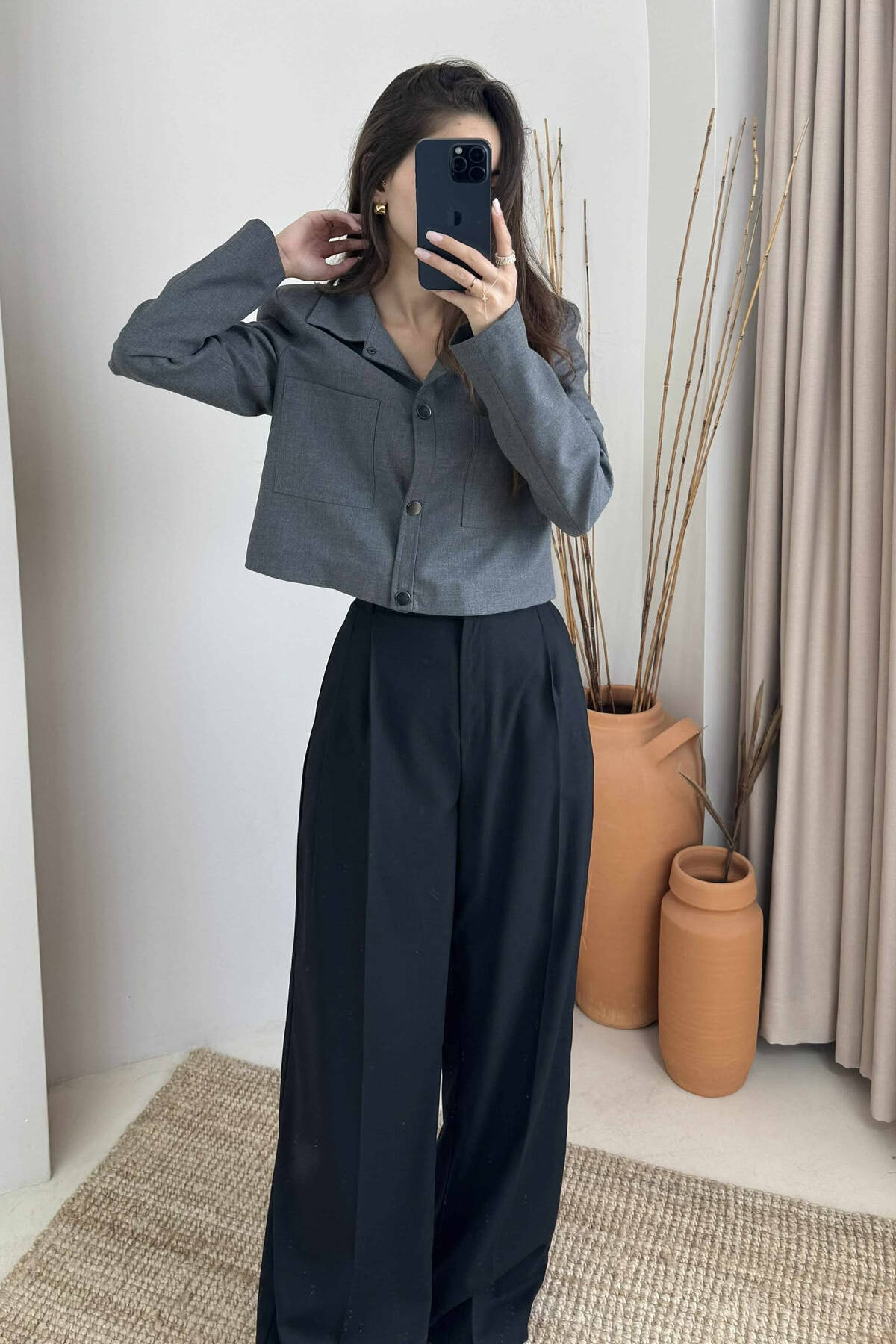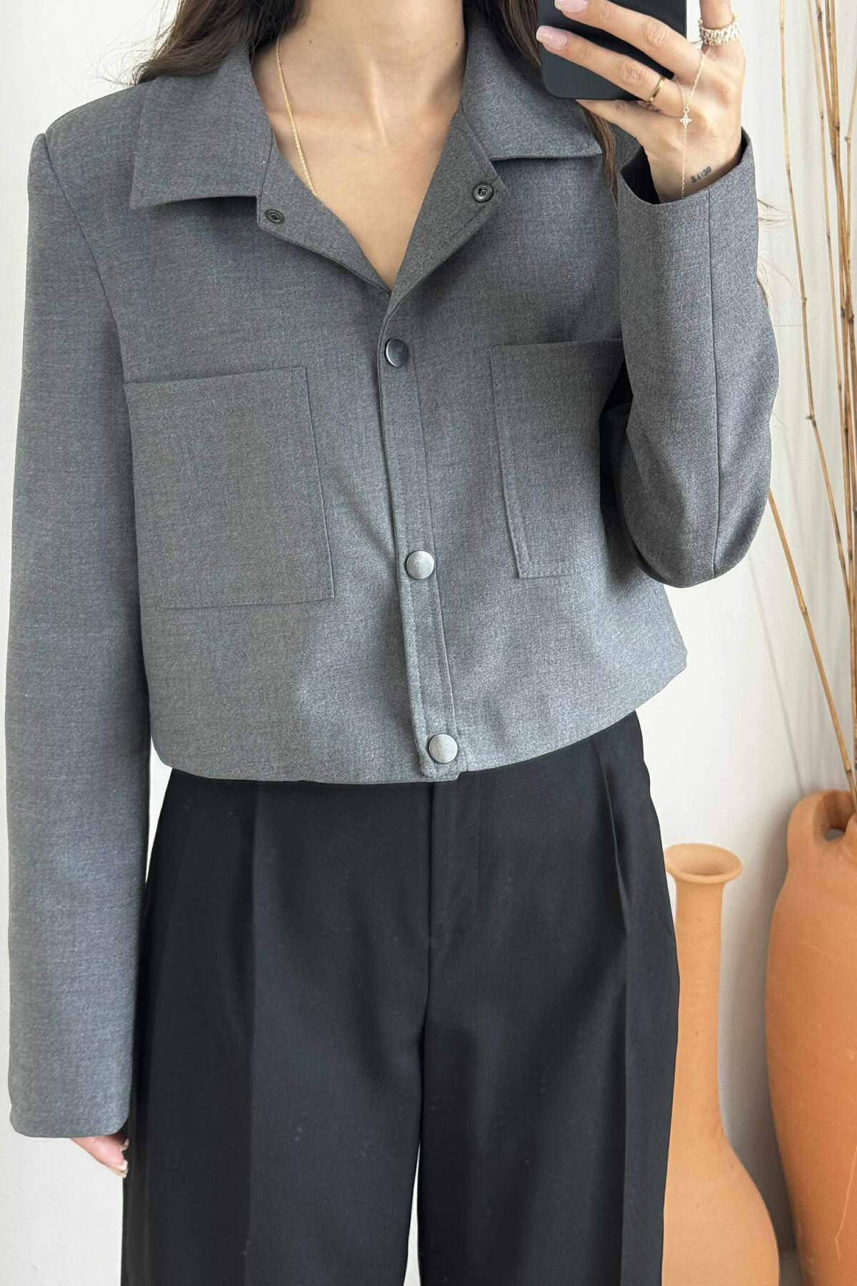 ONE COLOR BUTTONS WOMEN JACKET DARK GREY/GEE