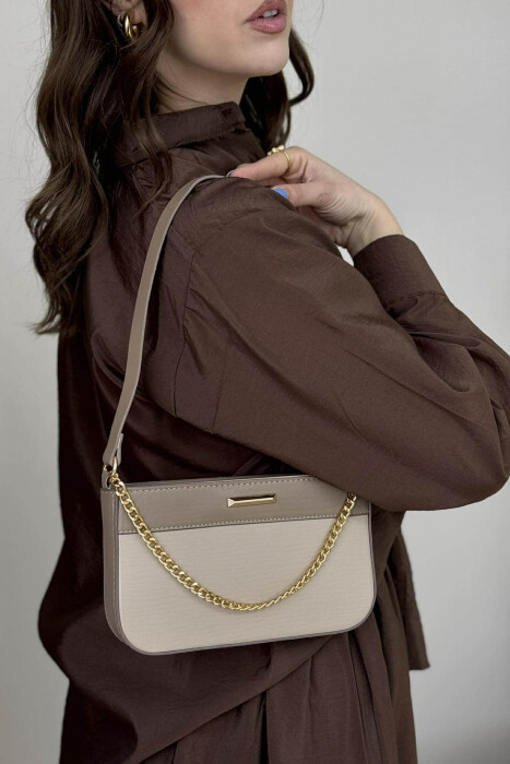 ONE COLOR CHAIN DETAIL WOMEN BAG BEIGE/BEZHE