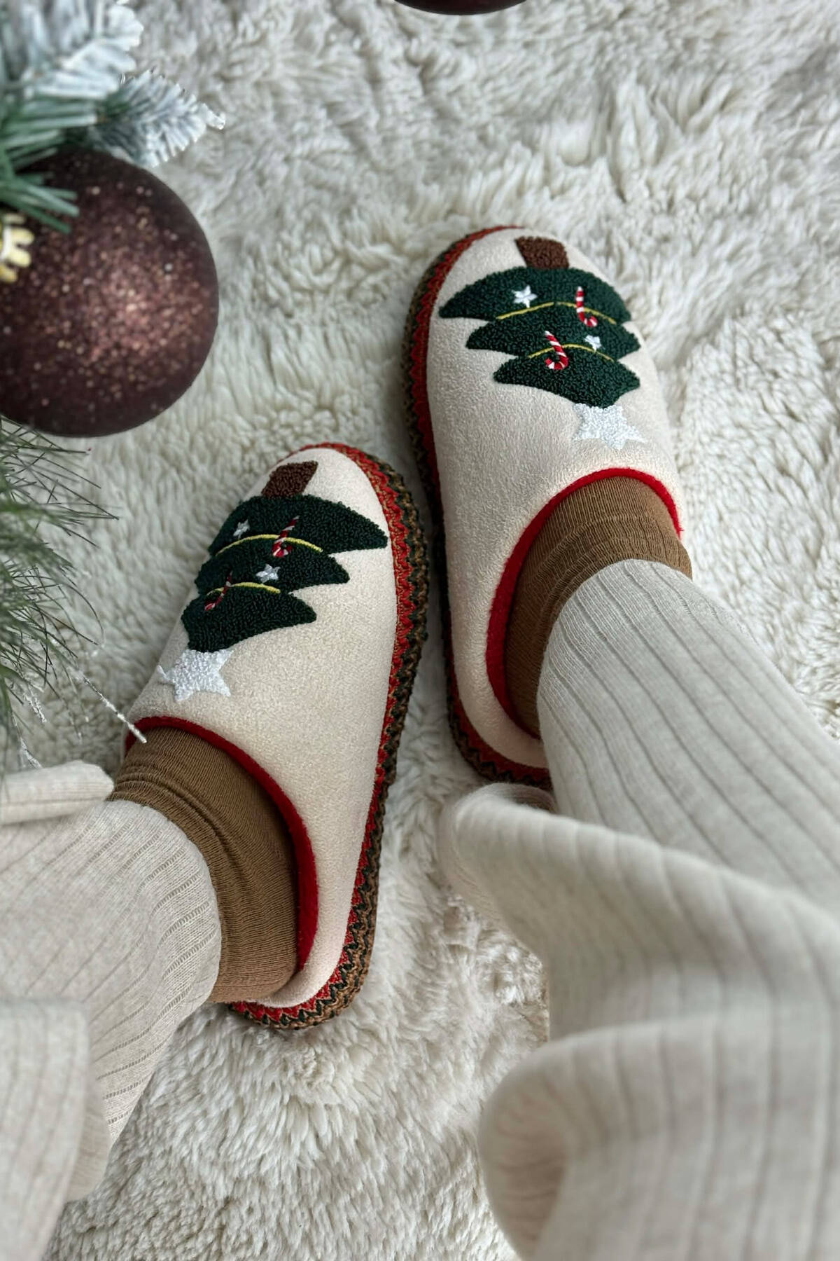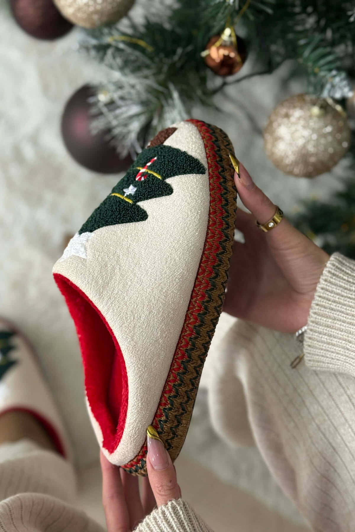 ONE COLOR CHRISTMAS TREE WOMAN SLIPPERS CREAM/KREM