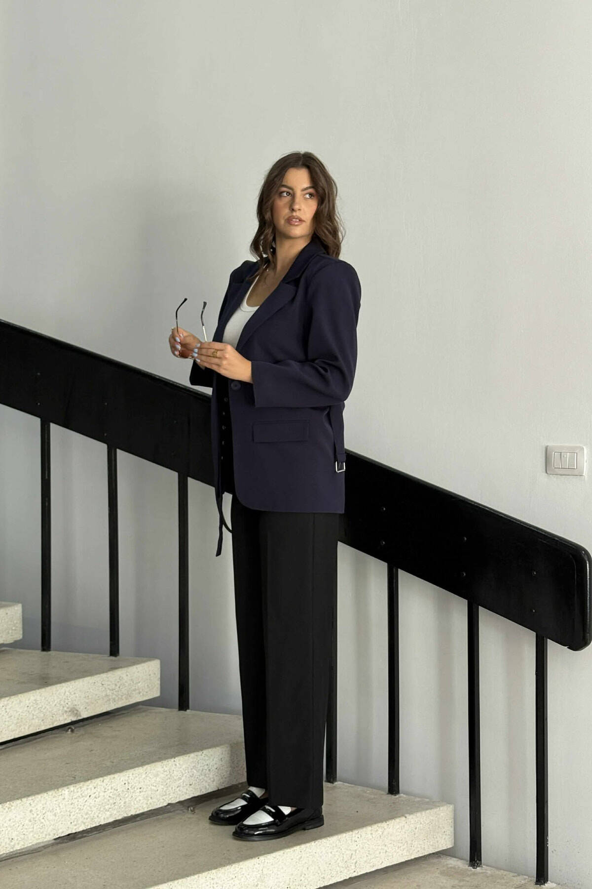 ONE COLOR CLASSIC BELTED WOMEN JACKET BLUE/BLU