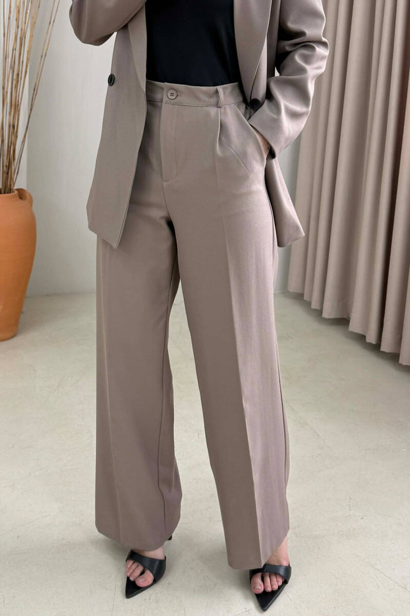 ONE COLOR CLASSIC JACKET + TROUSERS WOMAN SET LIGHT BROWN/KAZB