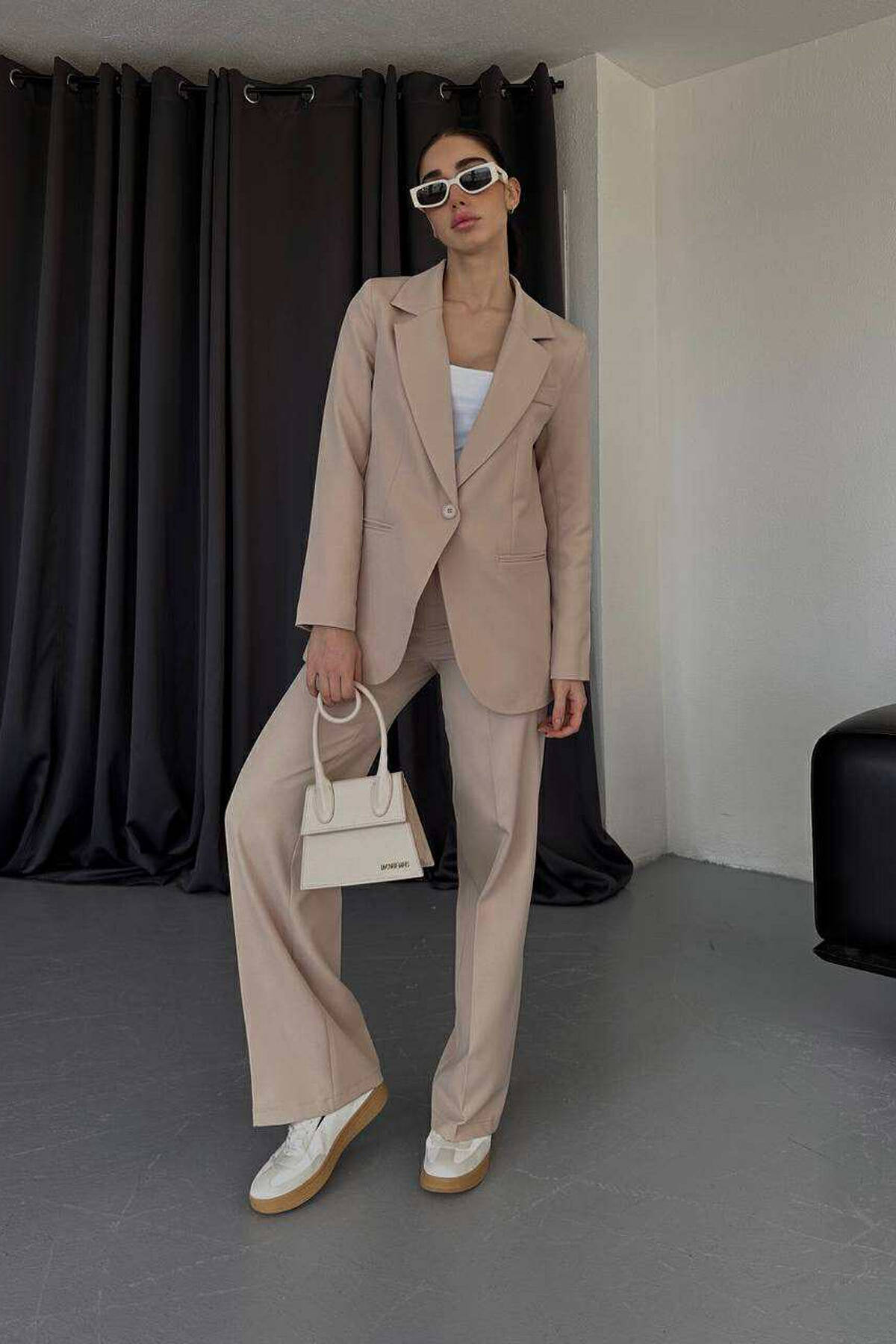 ONE COLOR CLASSIC JACKET + TROUSERS WOMAN SET BEIGE/BEZHE