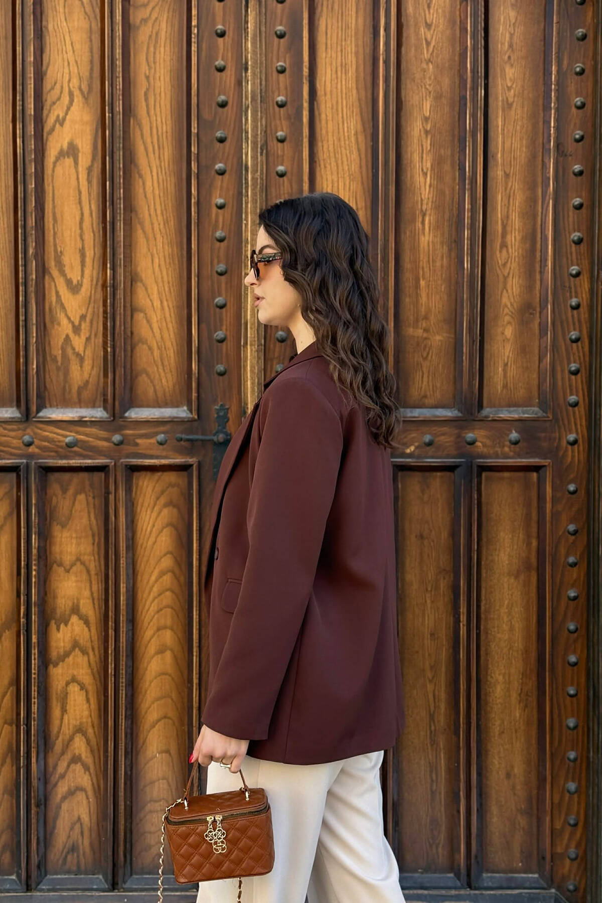 ONE COLOR BUTTONED WOMAN JACKET BROWN/KAFE