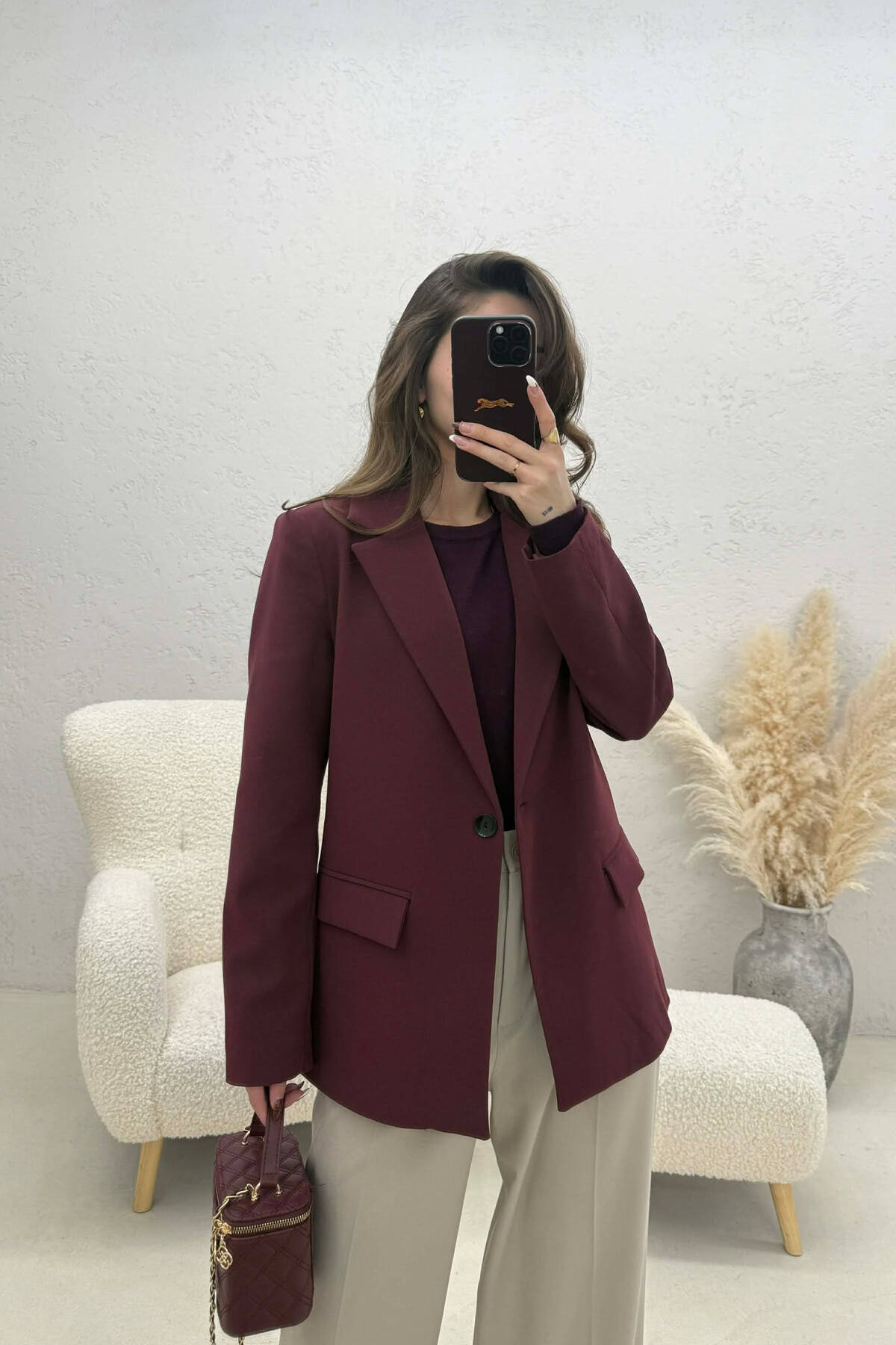 ONE COLOR CLASSIC SIMPLE WOMEN JACKET BURGUNDY/VISHNJE