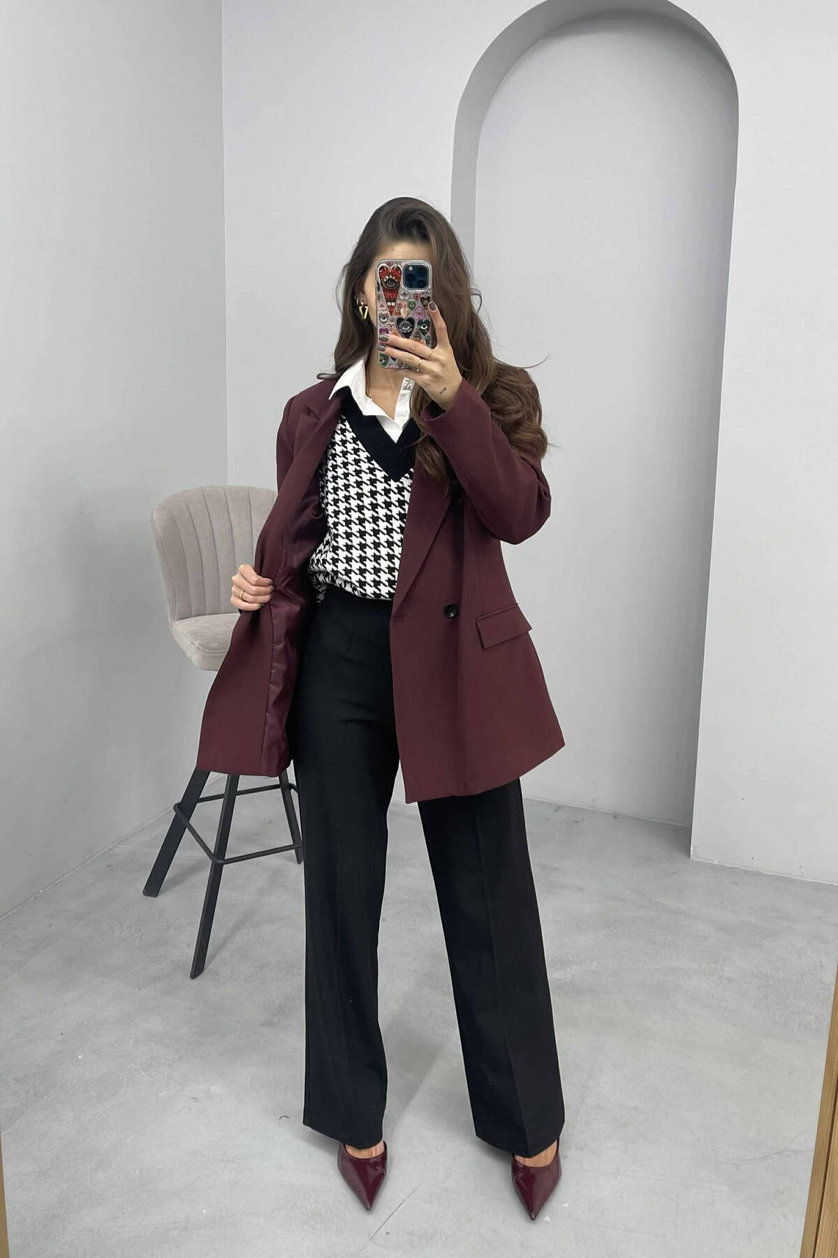 ONE COLOR CLASSIC SIMPLE WOMEN JACKET BURGUNDY/VISHNJE