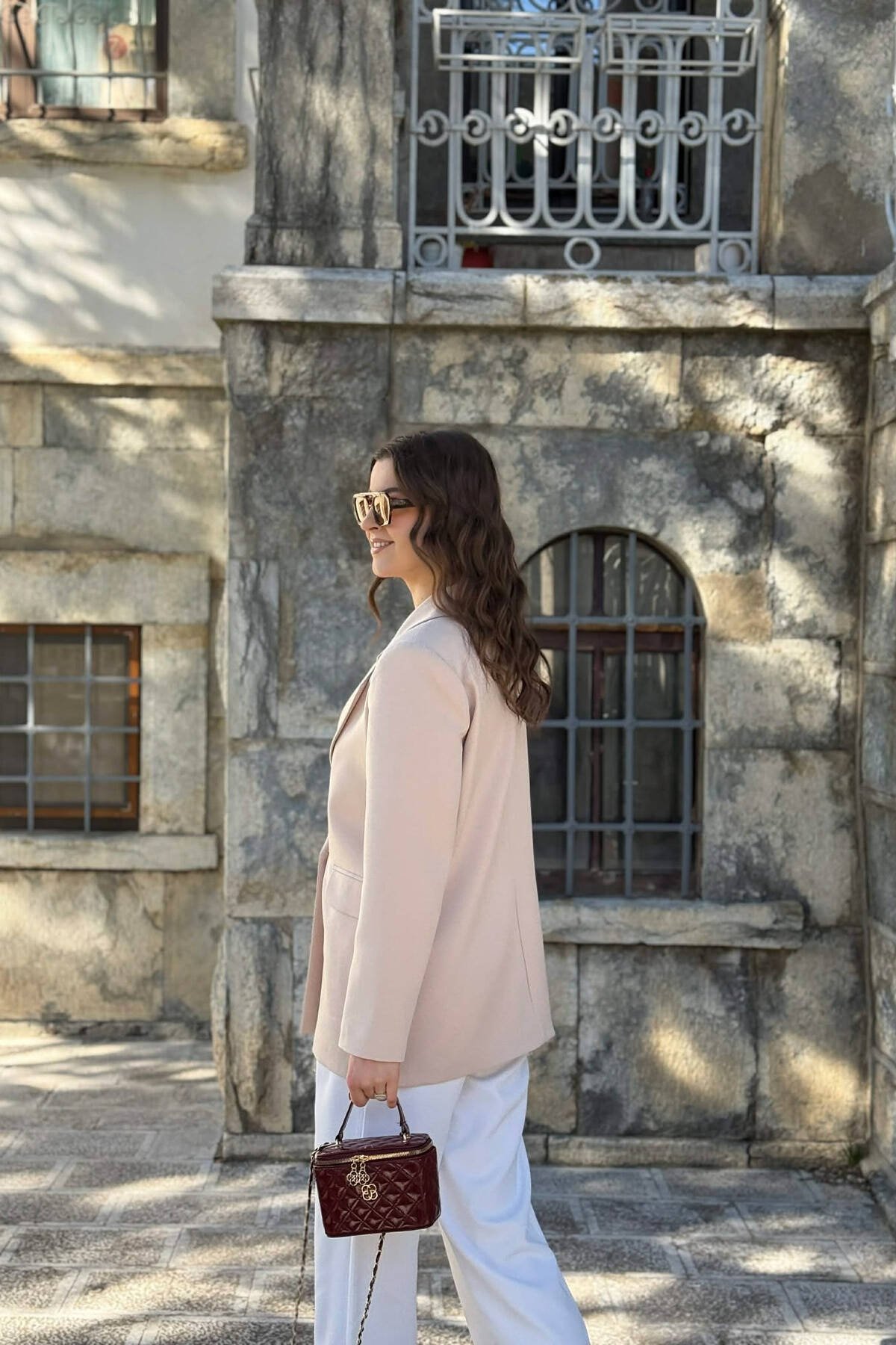 ONE COLOR CLASSIC SIMPLE WOMEN JACKET CREAM/KREM