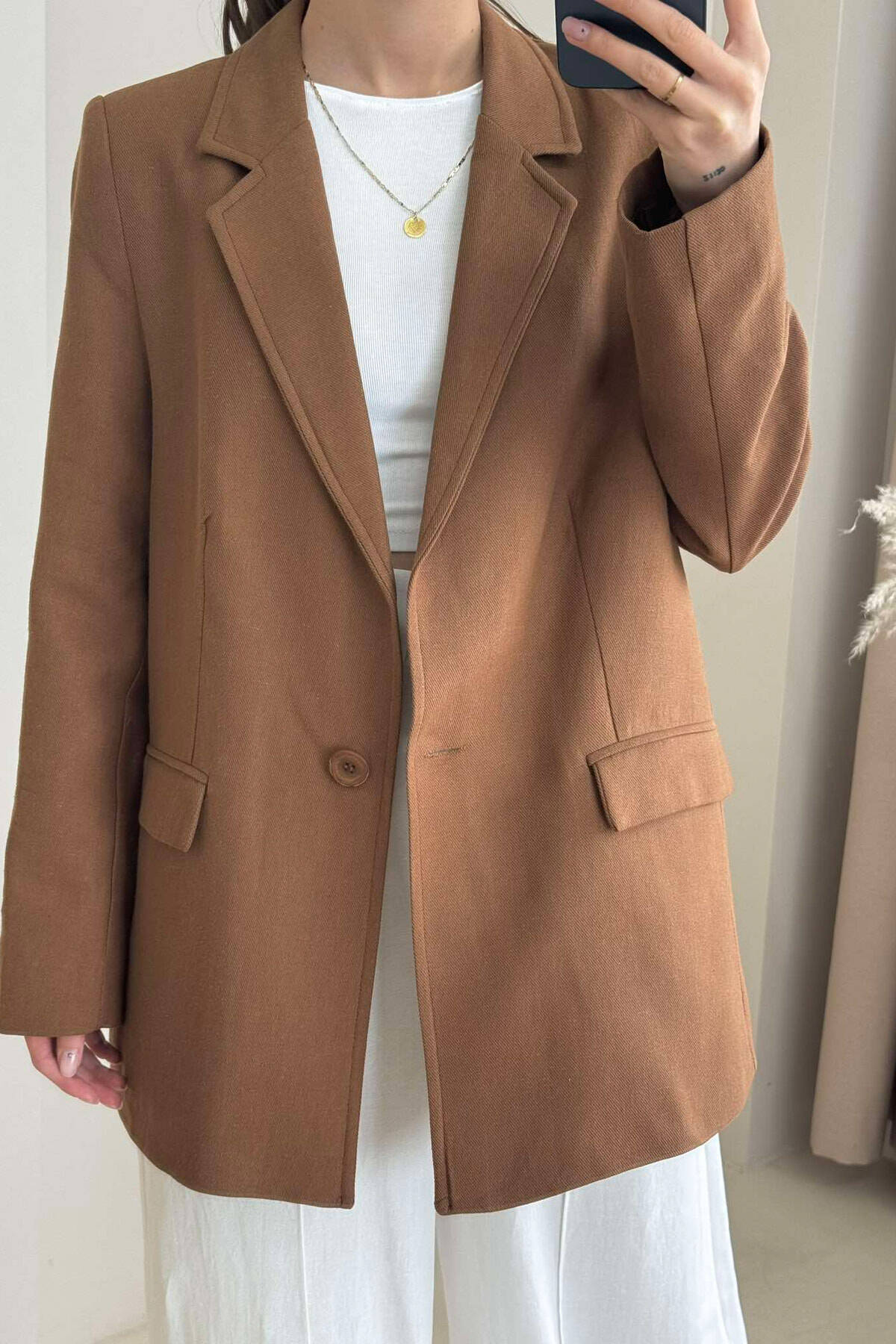 ONE COLOR BUTTONED WOMAN JACKET BROWN/KAFE