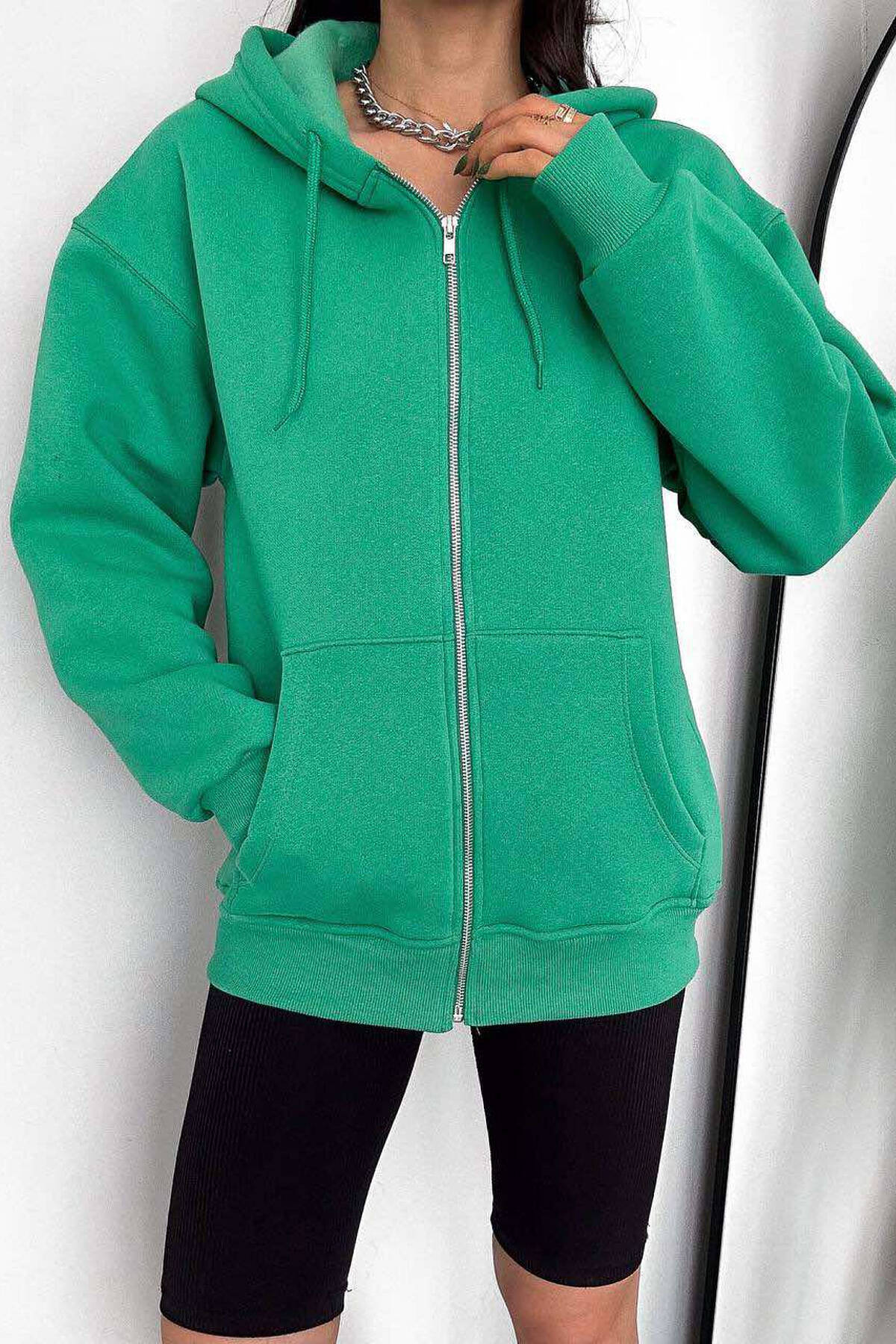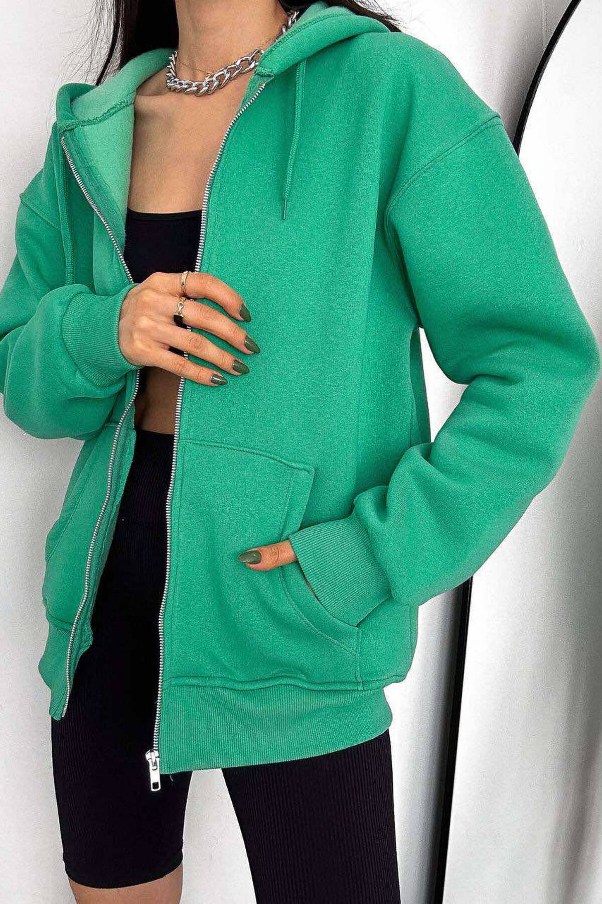 Xhaketë Pambuku Një Ngjyrëshe Për Femra Në Ngjyrën Jeshile