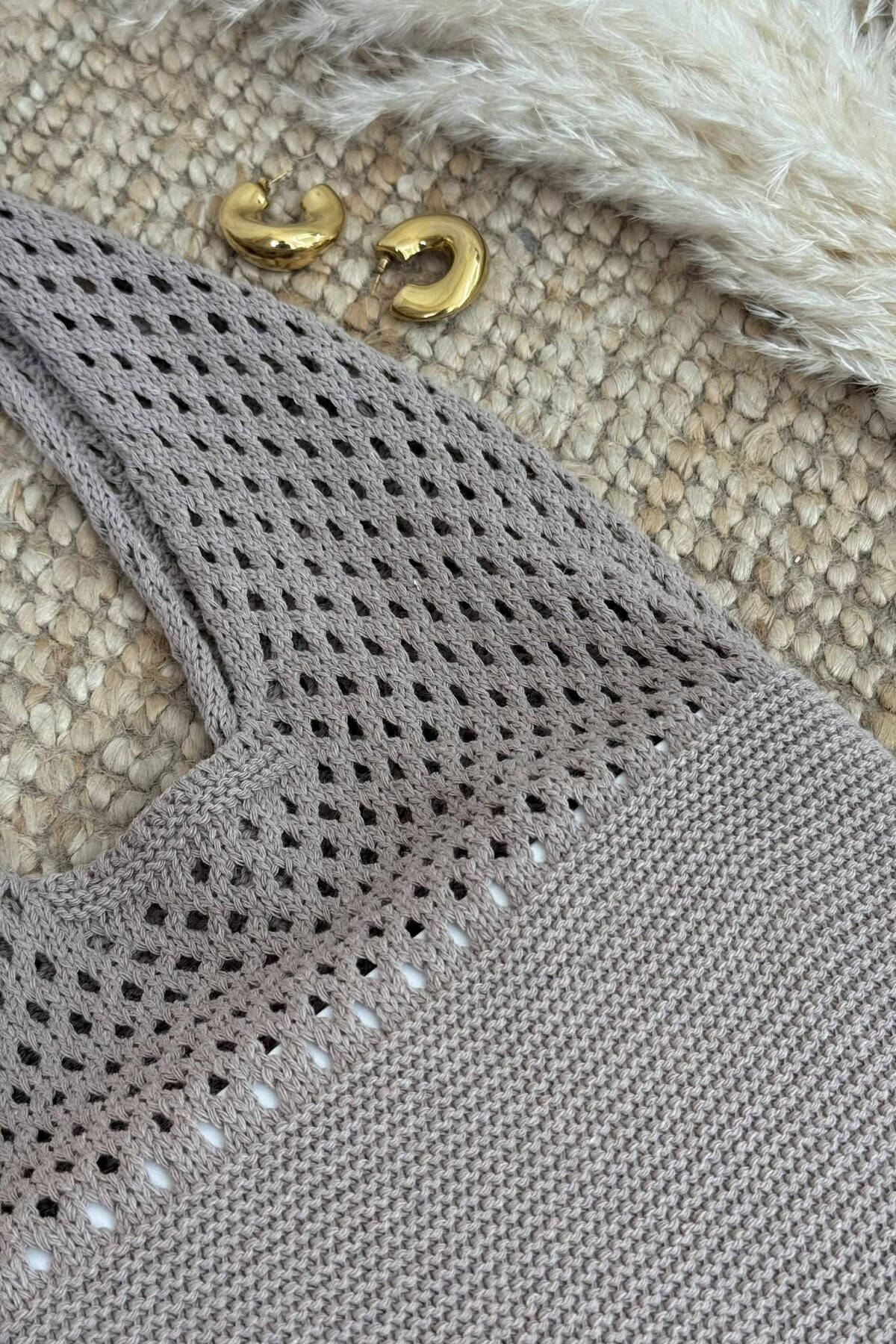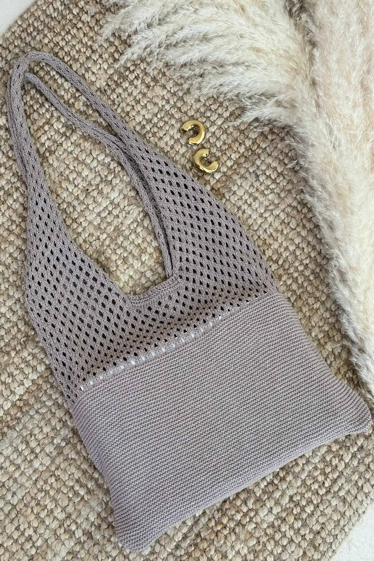 ONE COLOR CROCHET BEACH WOMEN BAG LIGHT BROWN/KAZB