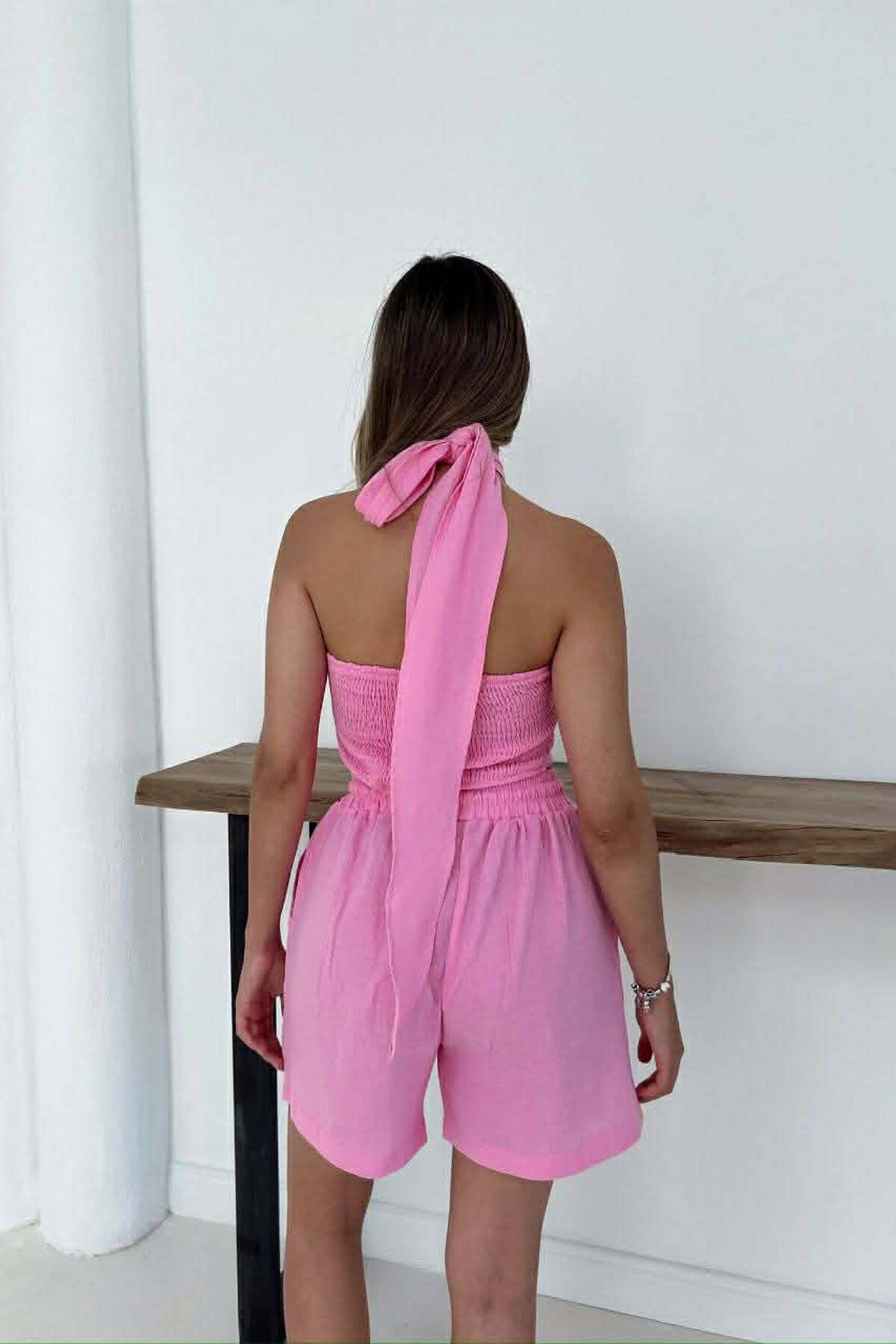 ONE COLOR CROP TOP + SHORTS WOMEN SET PINK/ROZE