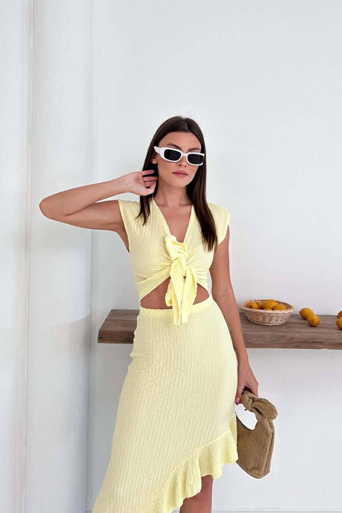 ONE COLOR CROP TOP+SKIRT WOMEN SET YELLOW/E VERDHE