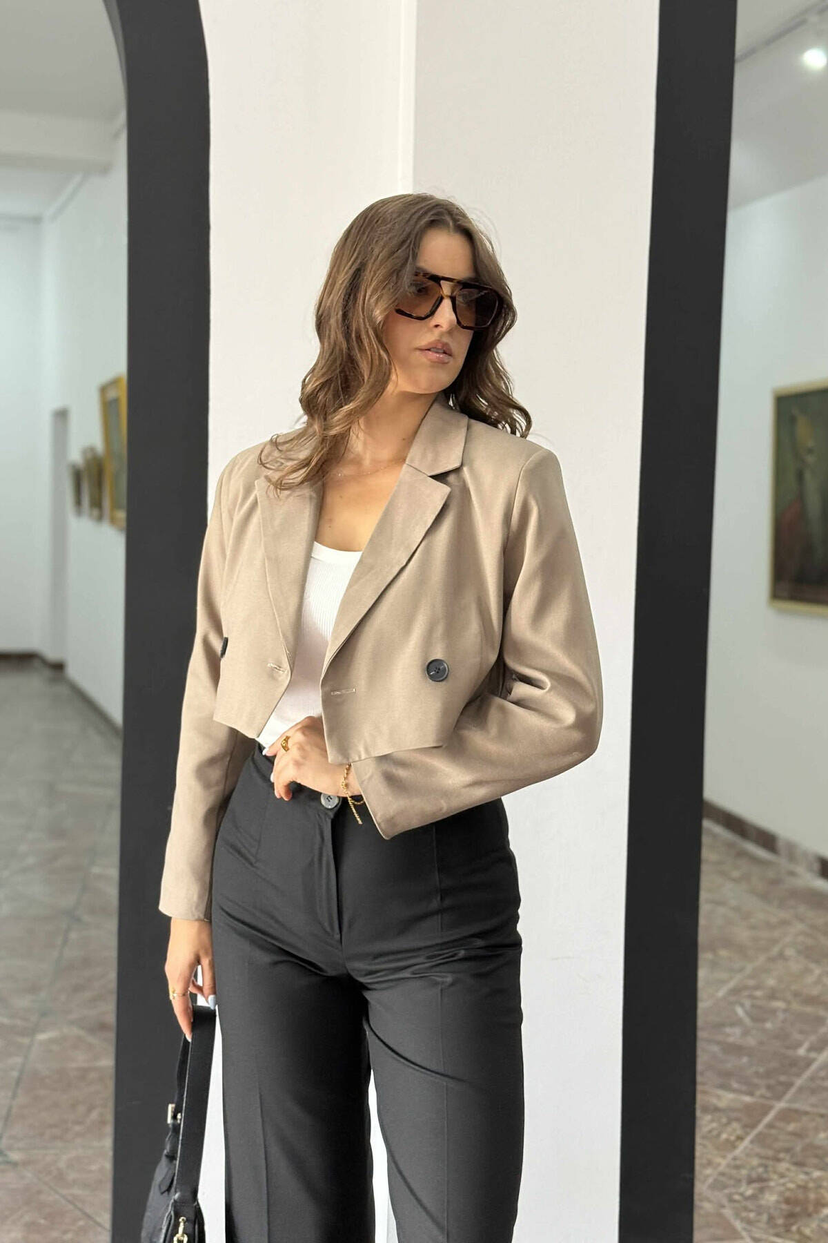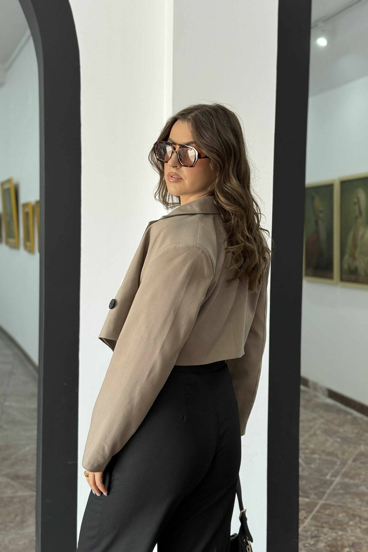 ONE COLOR CROPPED CLASSIC WOMEN JACKET KHAKI / KAKI