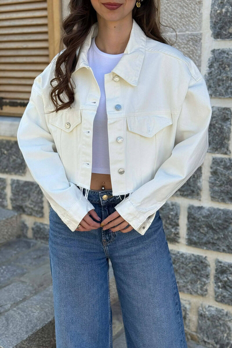 ONE COLOR CROPPED DENIM WOMEN JACKET CREAM/KREM