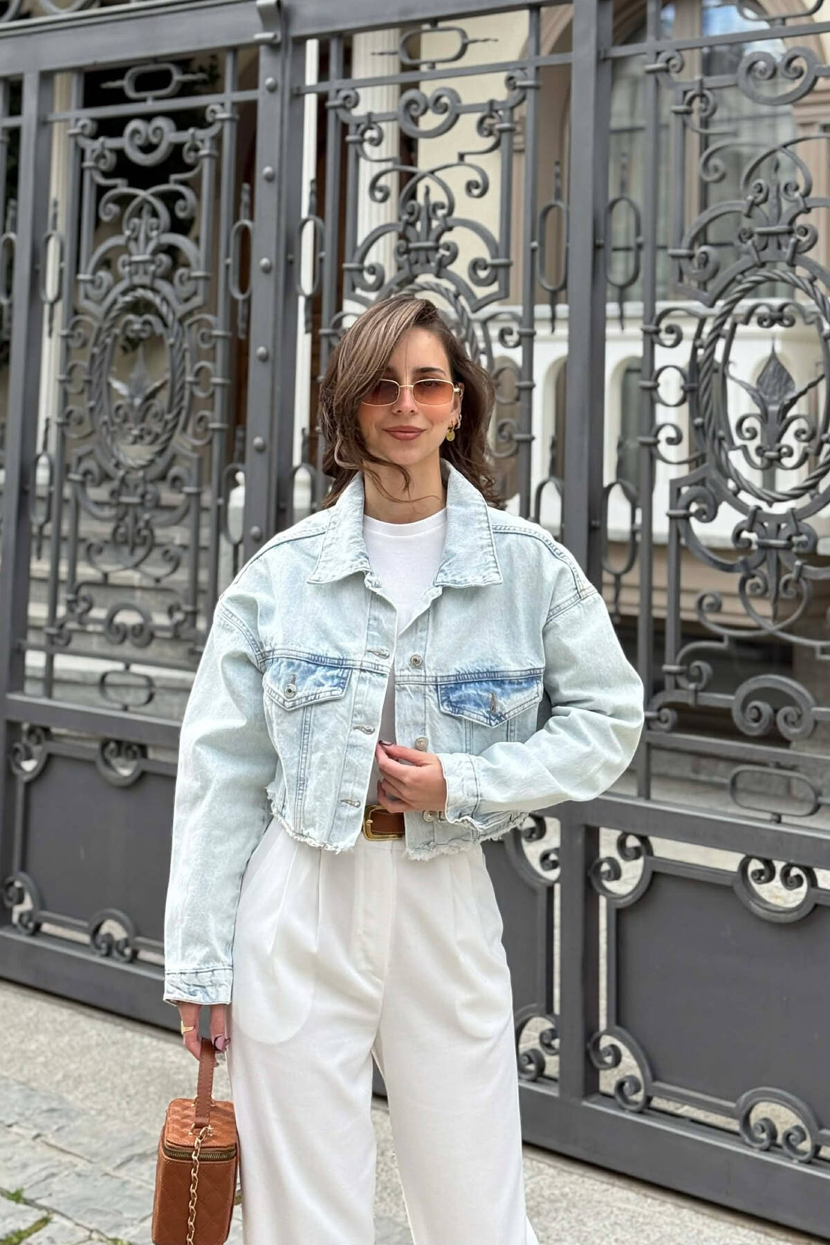 ONE COLOR CROPPED DENIM WOMEN JACKET CREAM/KREM