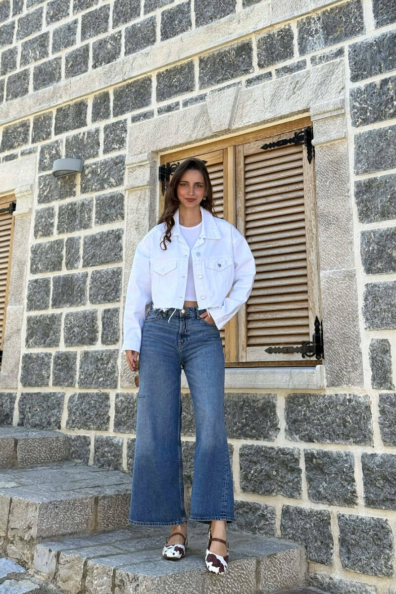 ONE COLOR CROPPED DENIM WOMEN JACKET WHITE-E BARDHE