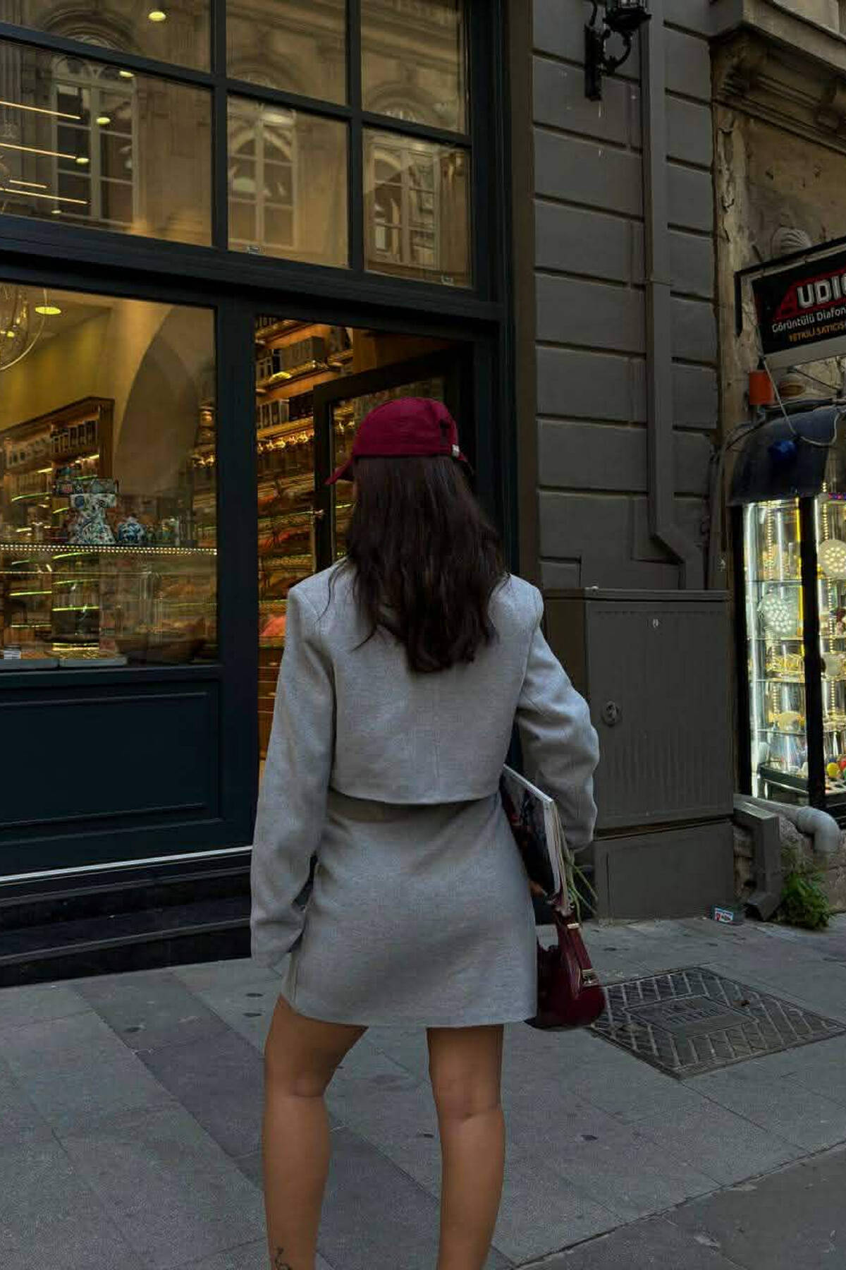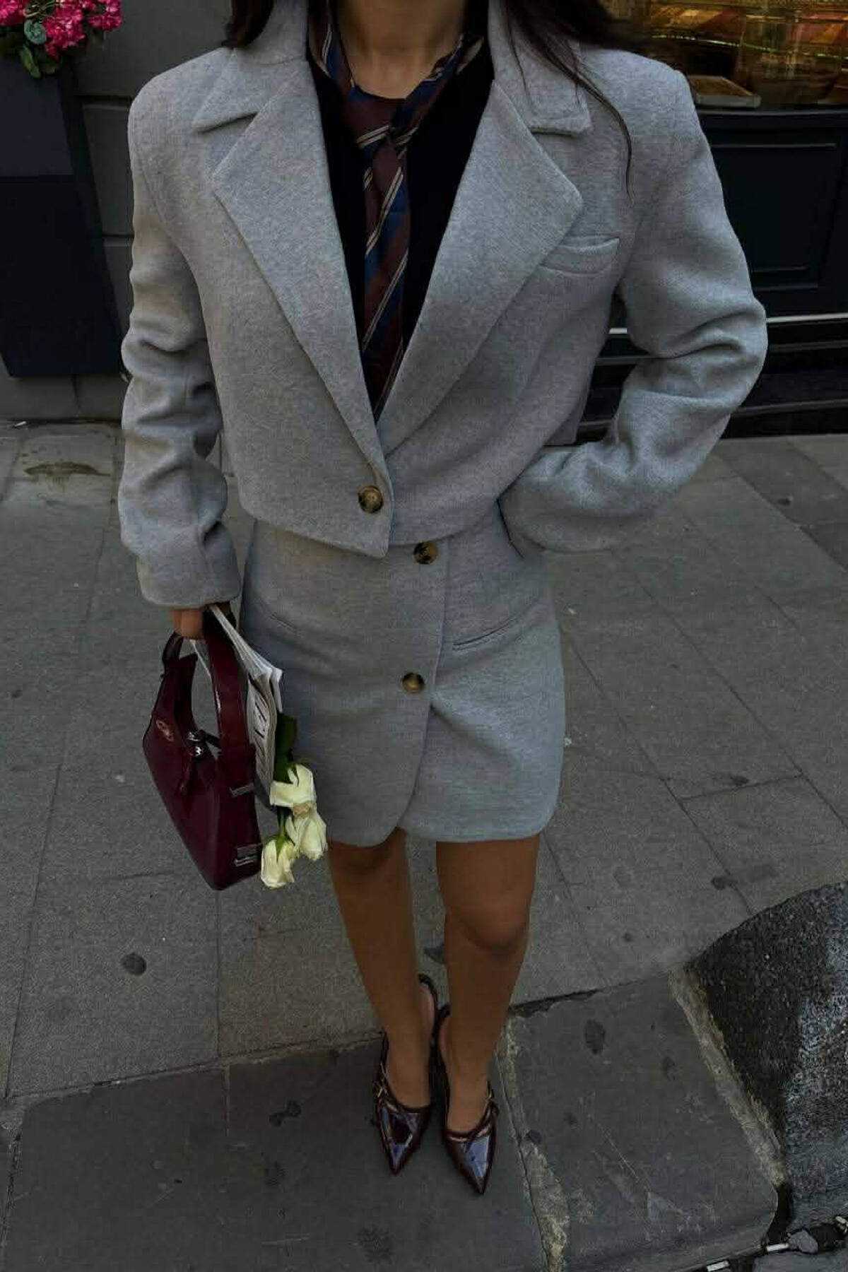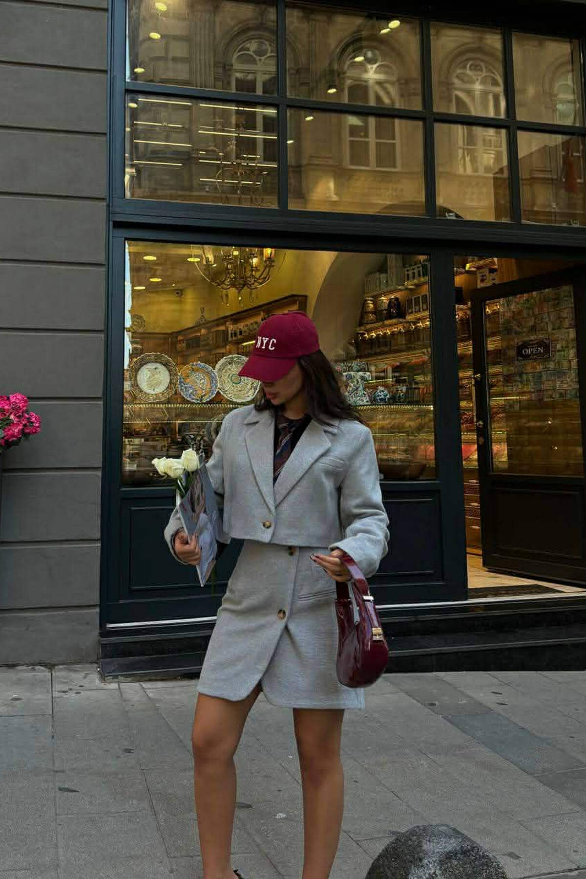 ONE COLOR CROPPED JACKET+SKIRT WOMEN SET LIGHT GREY/GZ