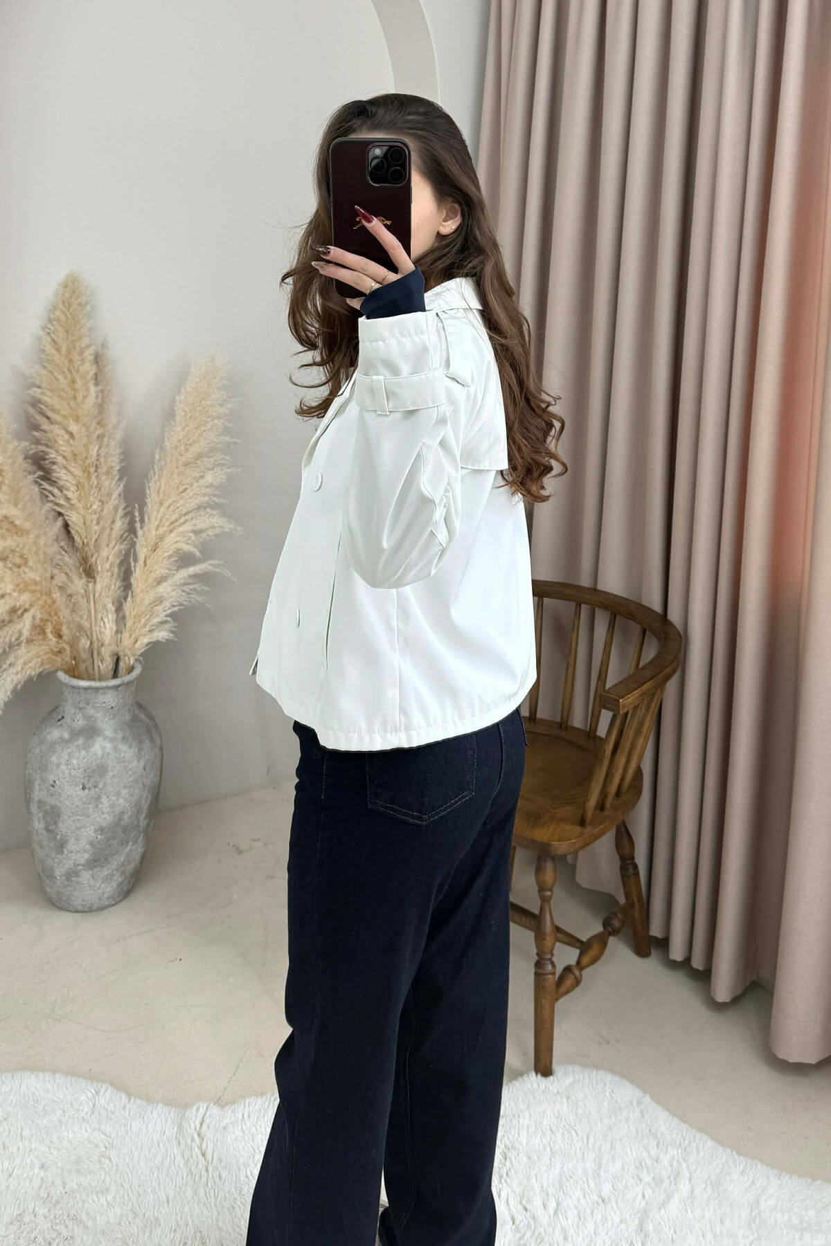 ONE COLOR CROPPED TRENCH WOMAN COAT WHITE-E BARDHE