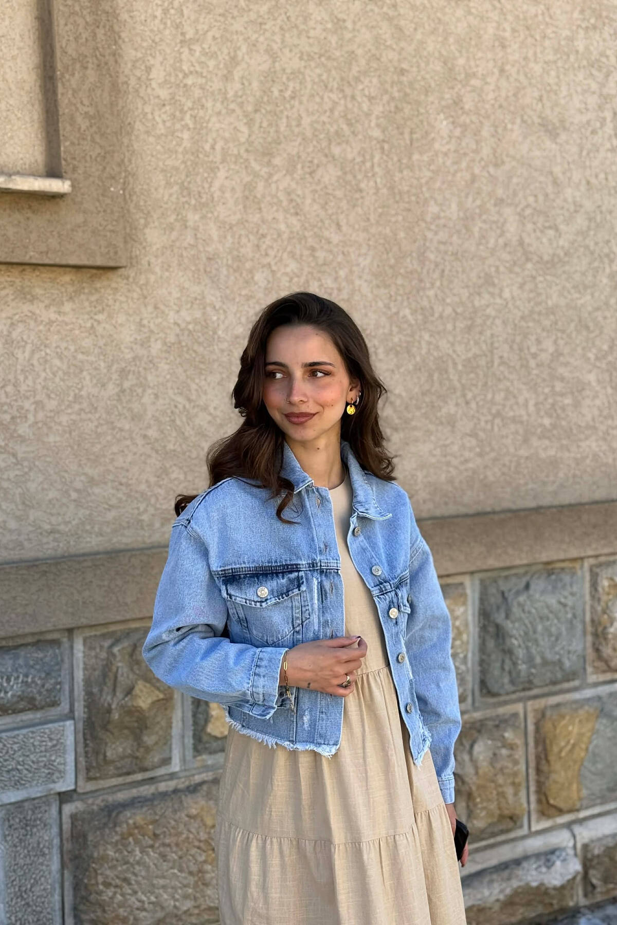 ONE COLOR CROPPED DENIM WOMEN JACKET CREAM/KREM