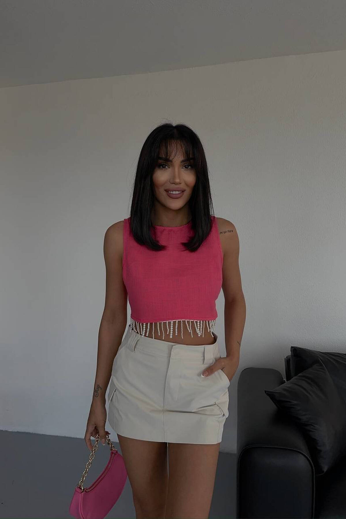ONE COLOR CROPPED WOMEN TANK TOP FUCHSIA/CIKLAMI