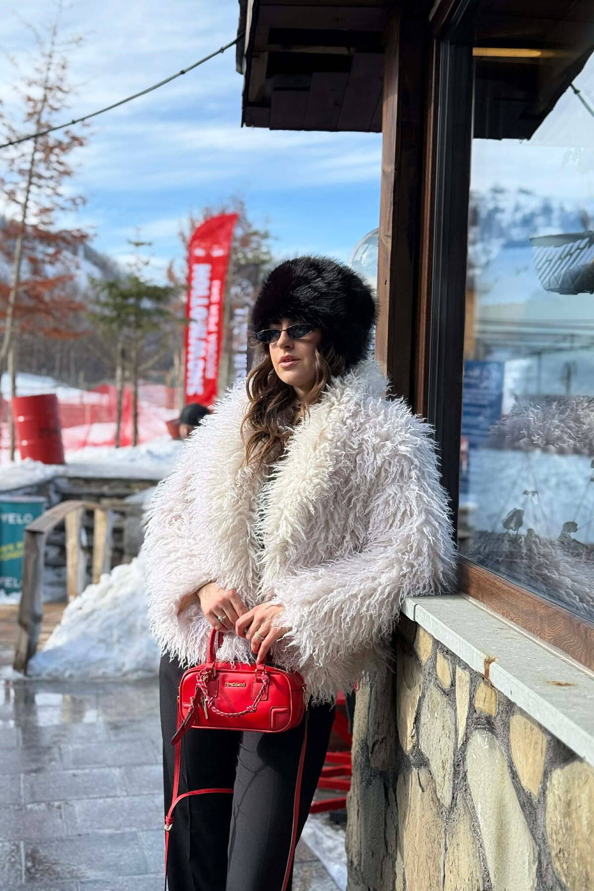 ONE COLOR CURLY FAUX FUR WOMAN COAT CREAM/KREM