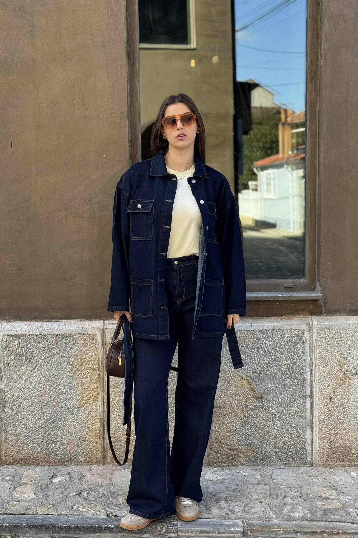 ONE COLOR DENIM JACKET+JEANS WOMEN SET BLUE/BLU