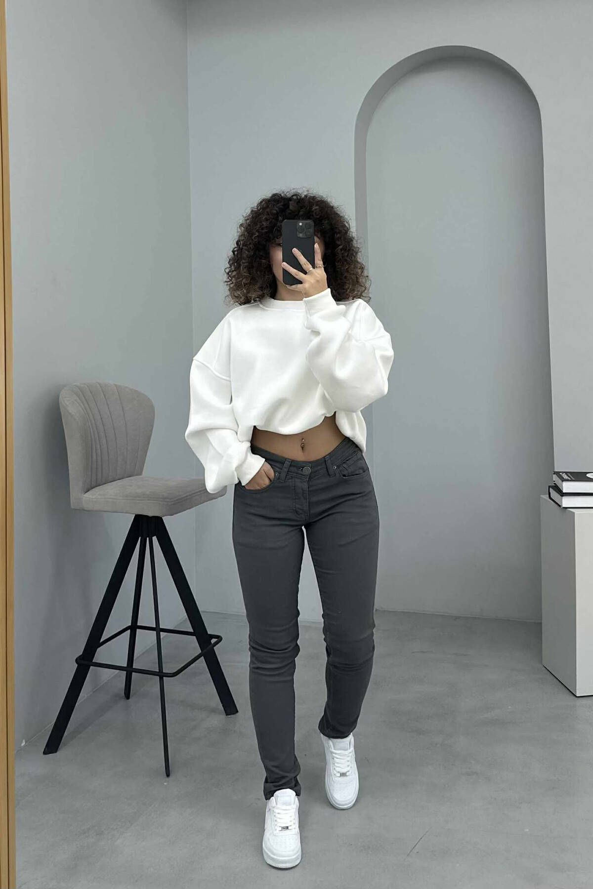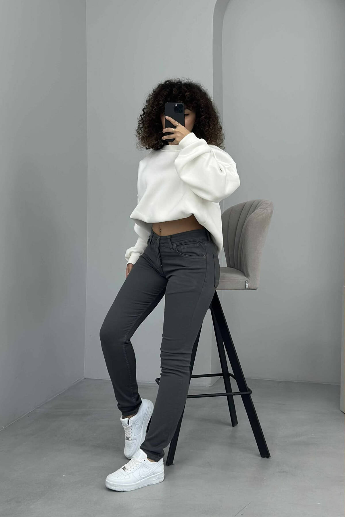 ONE COLOR DENIM SIMPLE WOMEN JEANS DARK GREY/GEE