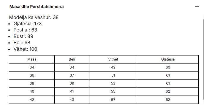 34-XS, 36-S, 38-M, 40-L, 42-XL