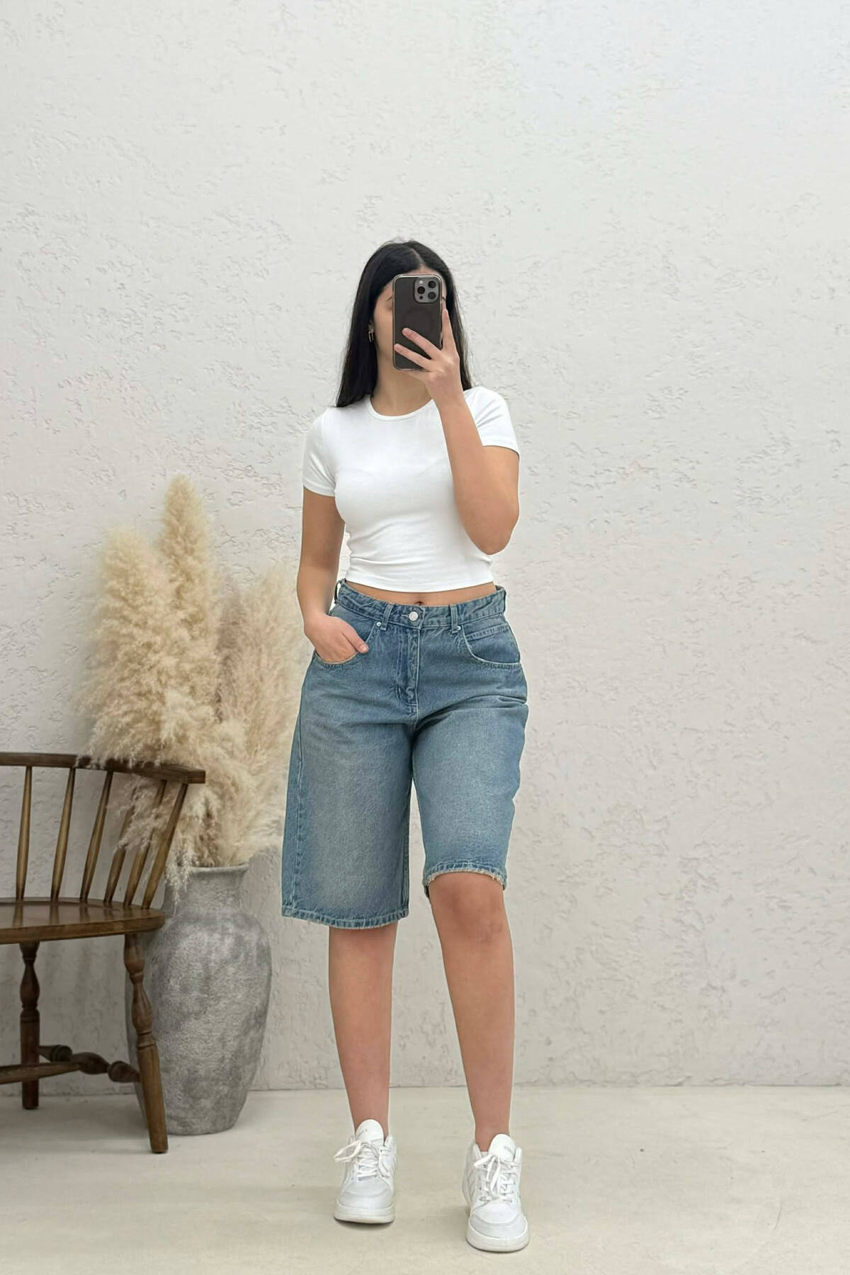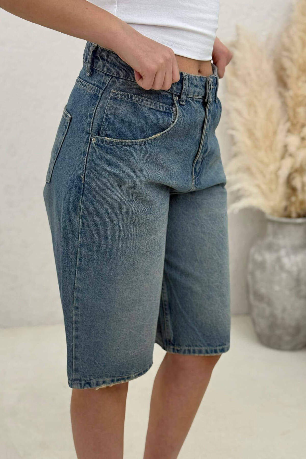 RIPPED KNEE HIGH WAIST DENIM WOMAN SHORTS LIGHTBLUE/BZ