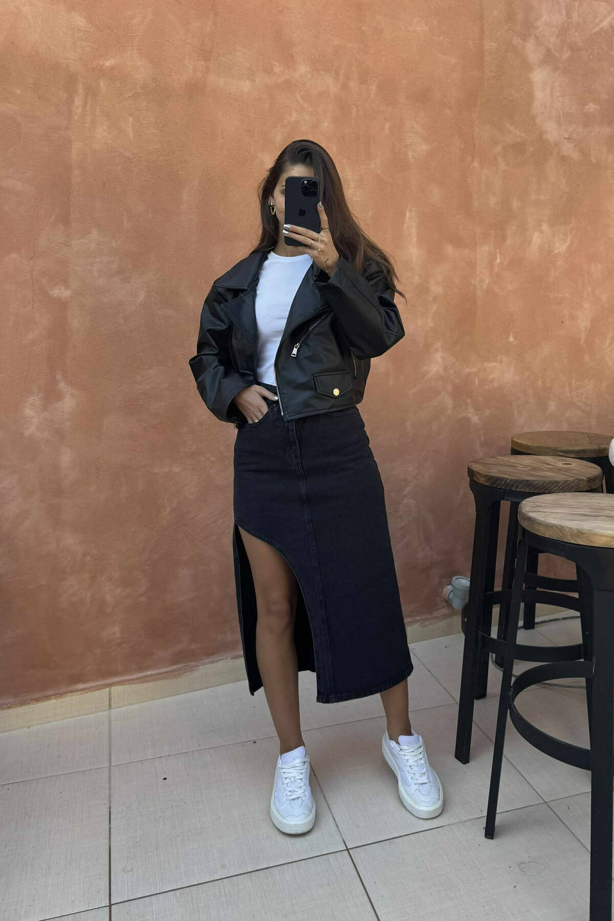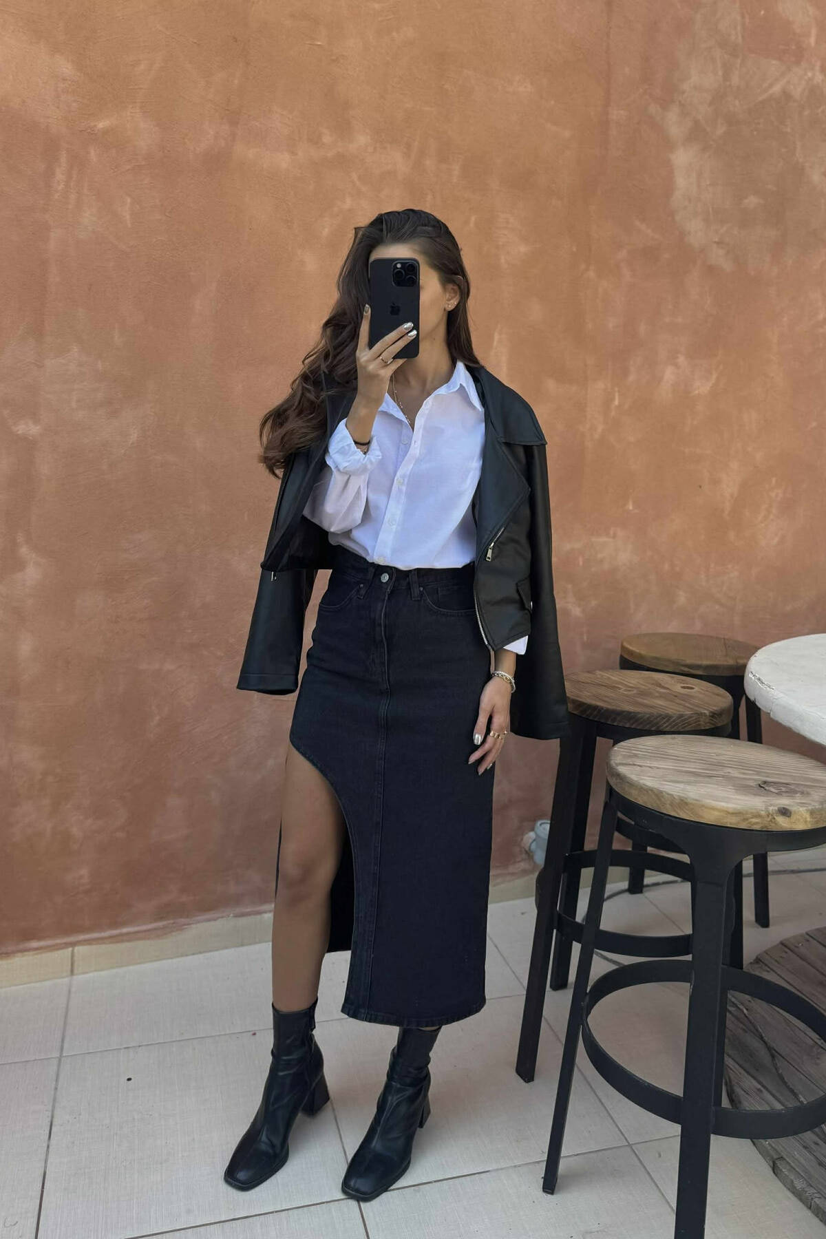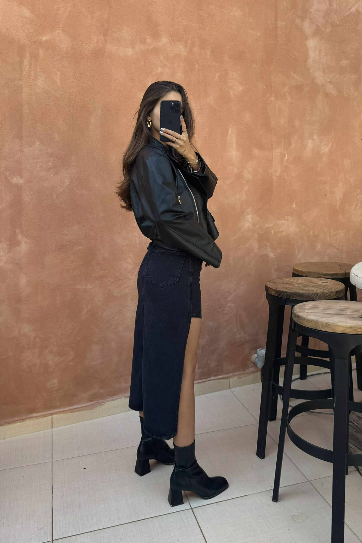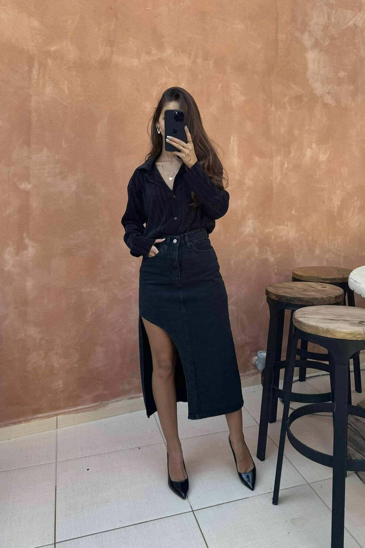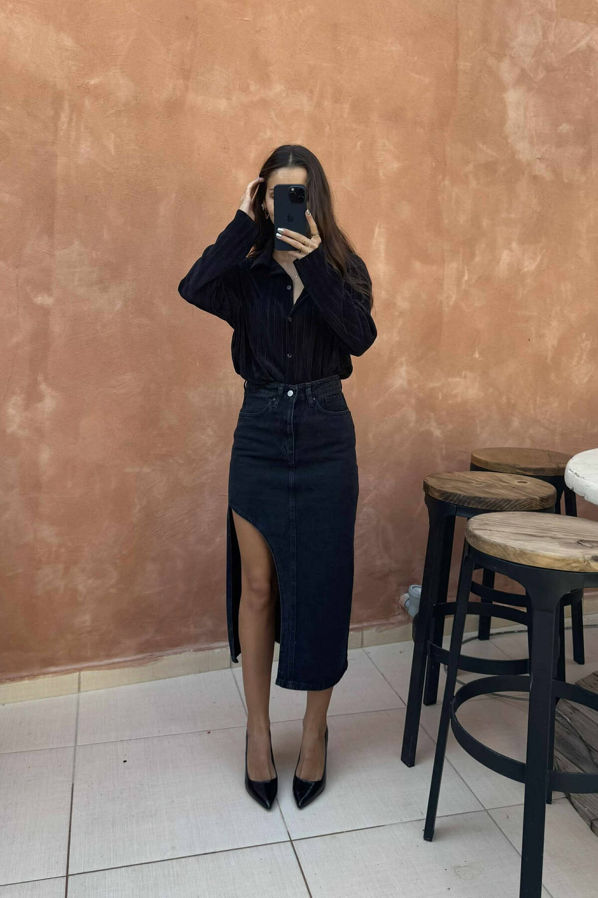 ONE COLOR DENIM WOMEN SKIRT DARK GREY/GEE