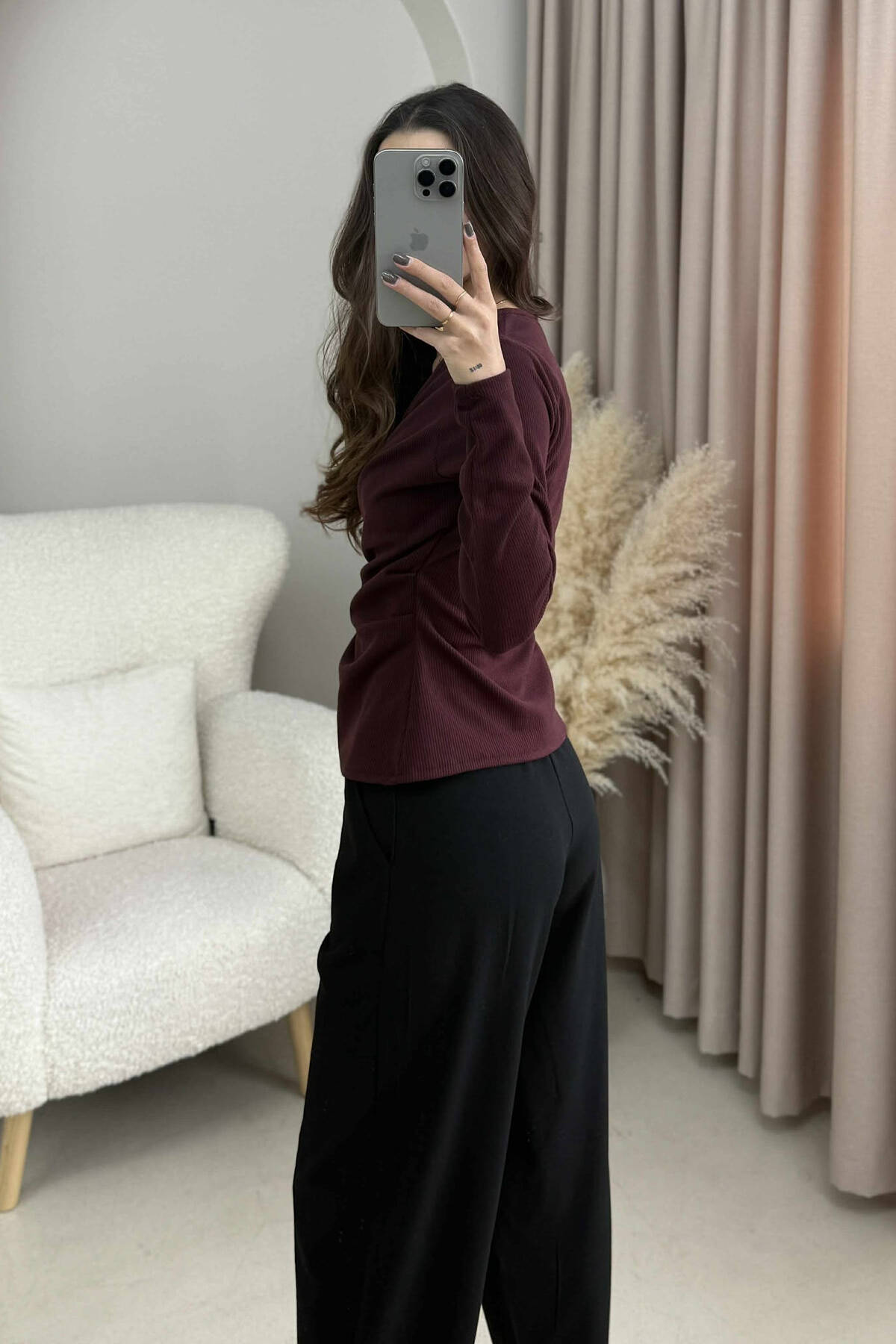 ONE COLOR DETAILED WOMEN SWEATSHIRT DARK BURGUNDY/VISHNJE E ERRET