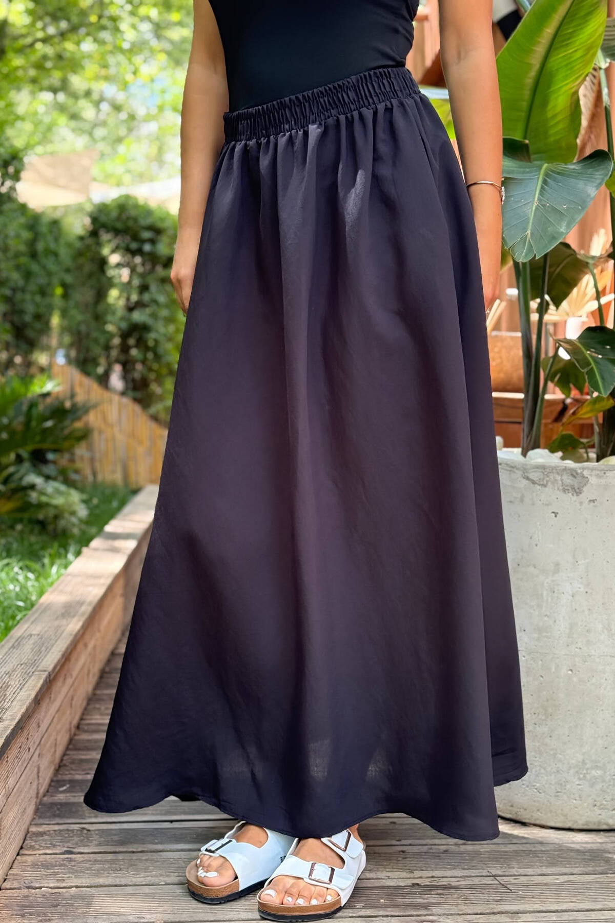 FUND NJË NGJYRËSH I GJATË ME BEL ELASTIK PËR FEMRA NË NGJYRËN E ZEZË