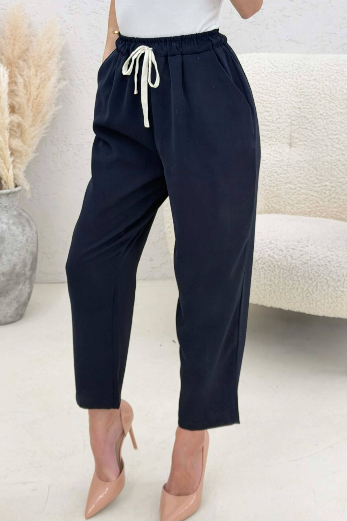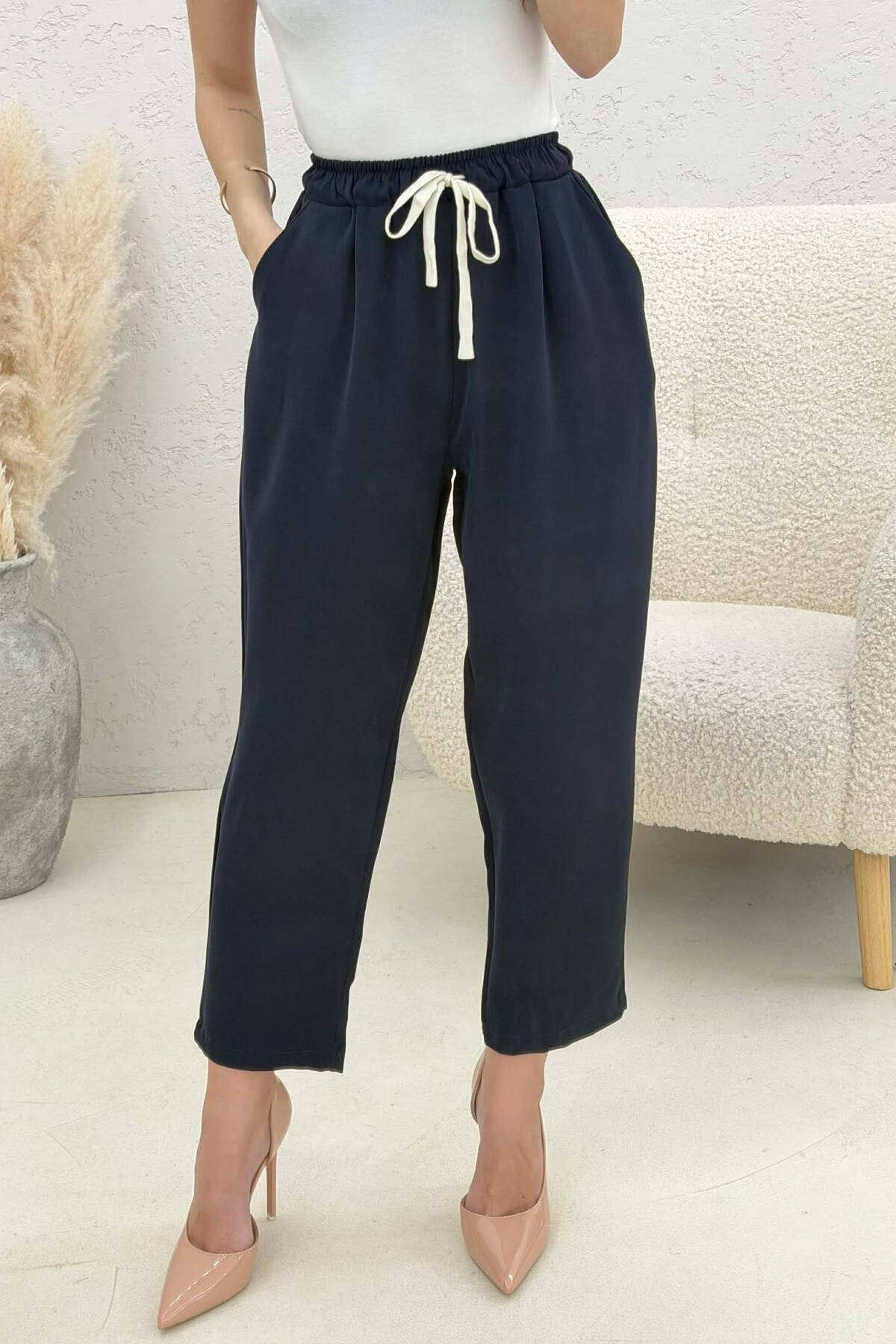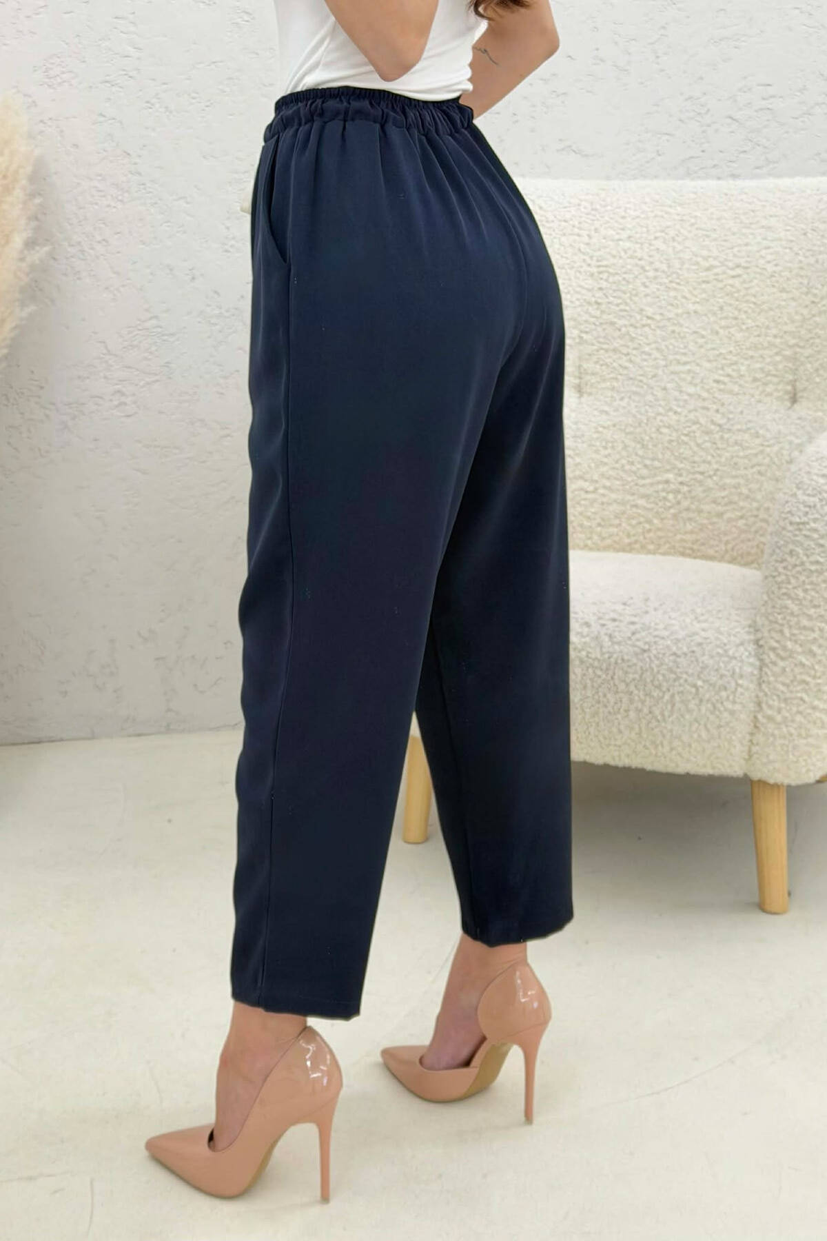 PANTALLONA ME BEL ELASTIK PER FEMRA NE NGJYRE BLU