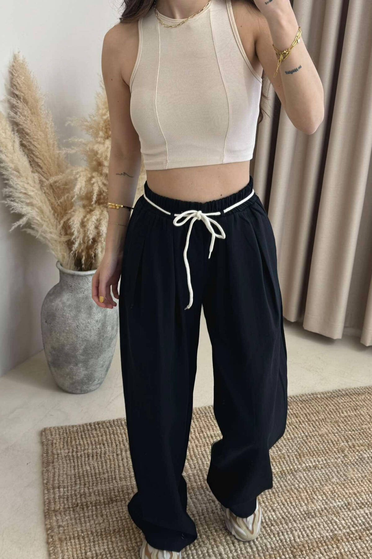 ELASTIC WAIST LACINGS DESIGNED WOMEN TROUSERS BLACK/ E ZEZE