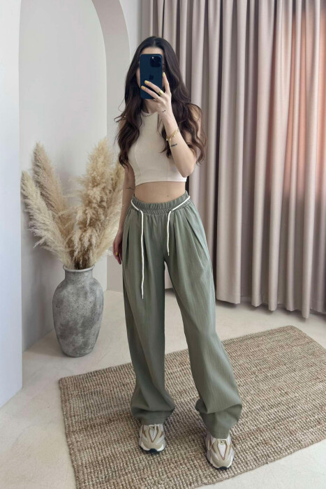 ELASTIC WAIST LACINGS DESIGNED WOMEN TROUSERS GREEN/JESHILE