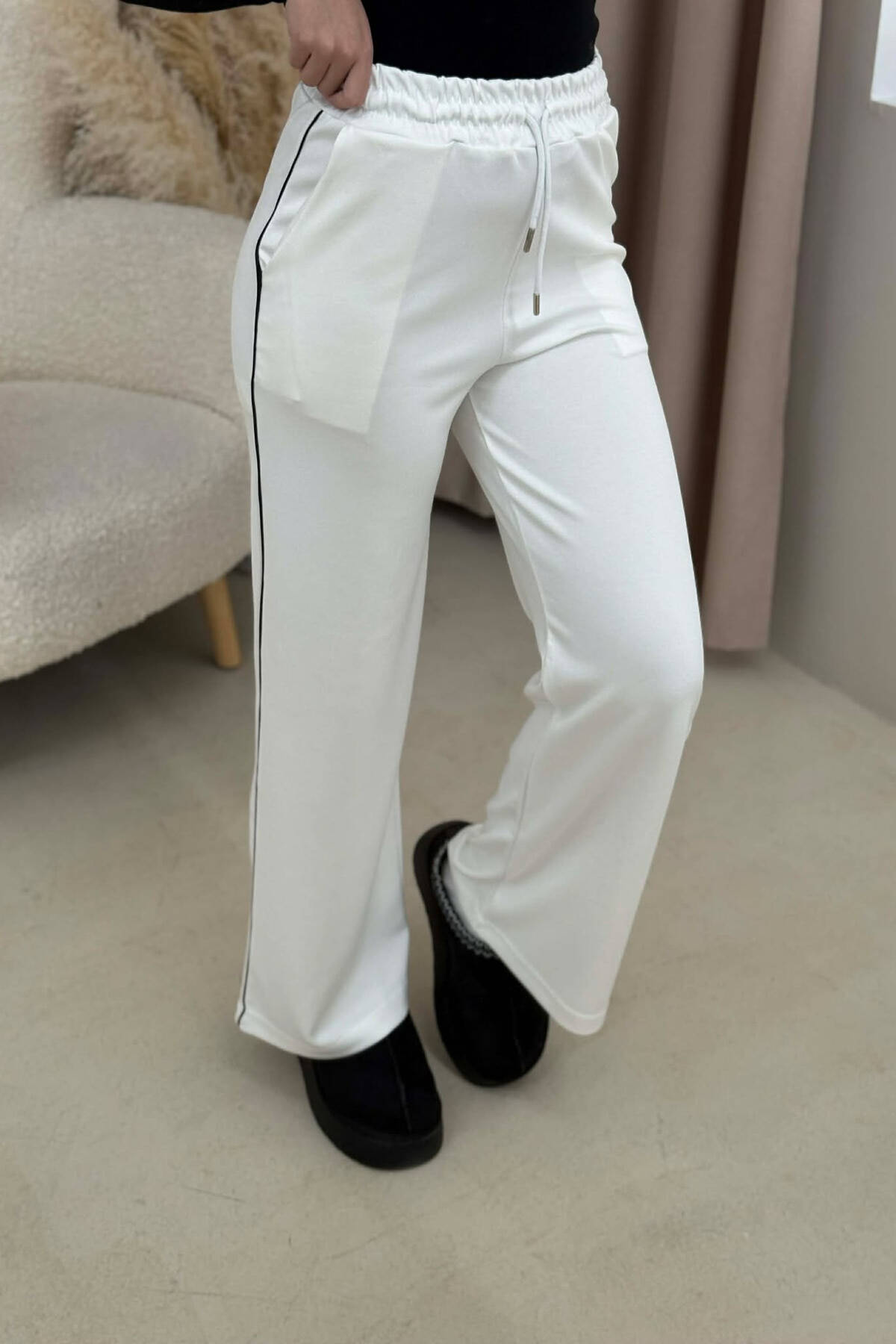 ONE COLOR BELT DETAIL WOMEN SWEATPANTS WHITE-E BARDHE