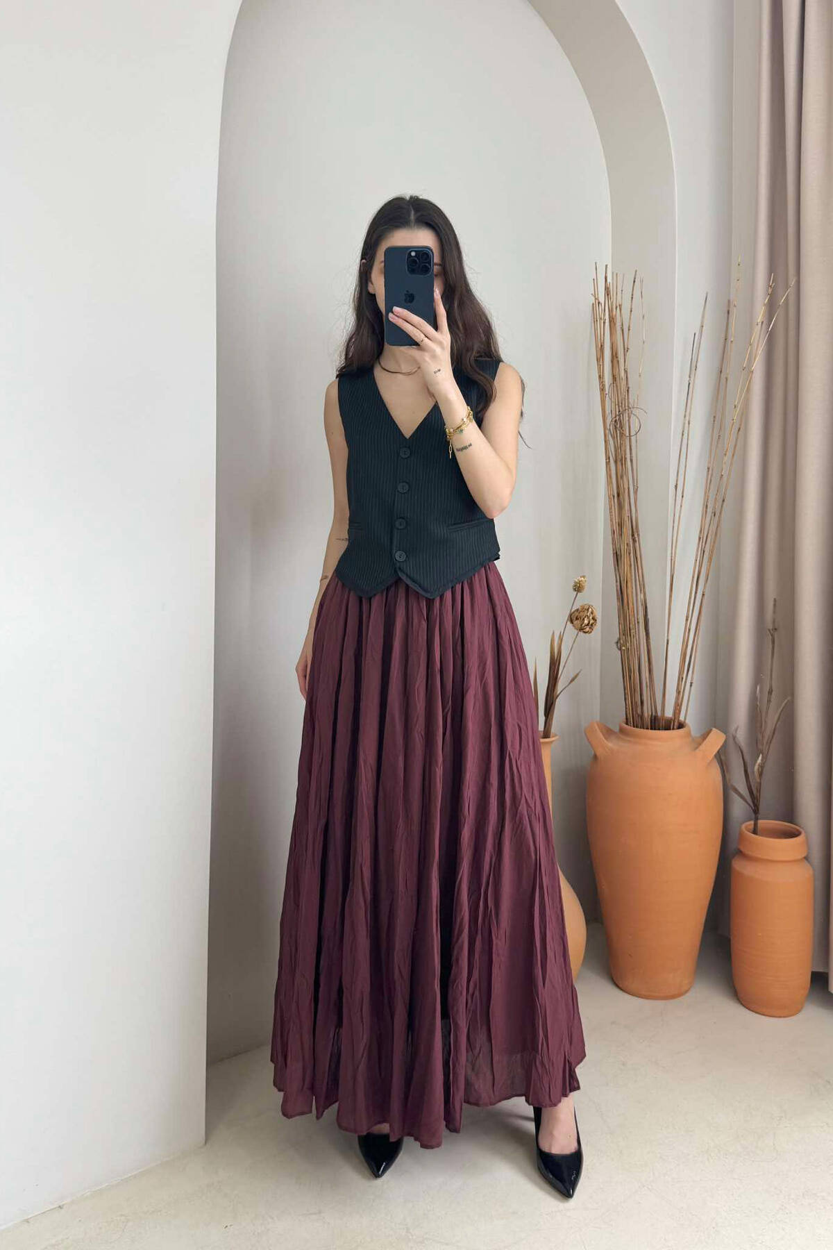 ONE COLOR ELASTIC WAIST LONG WOMEN SKIRT BURGUNDY/VISHNJE
