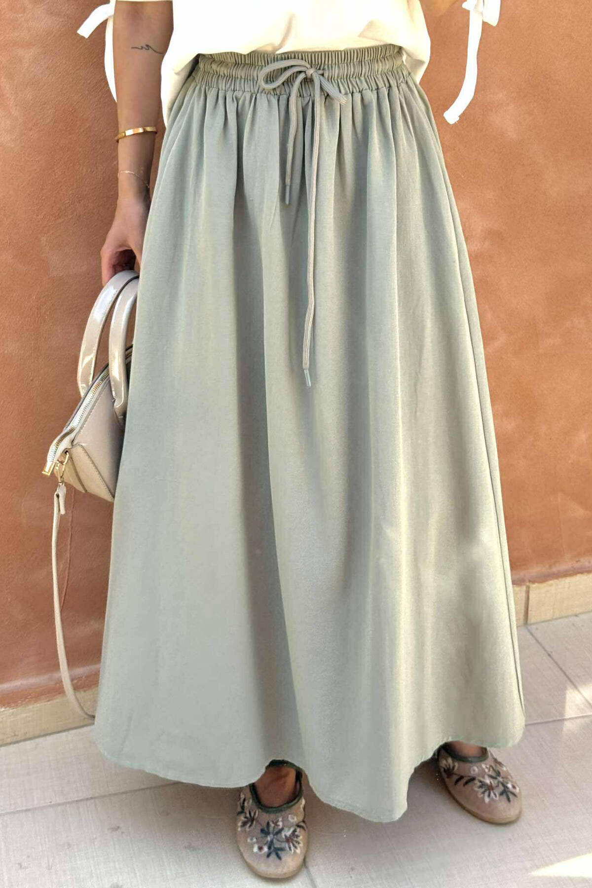 ONE COLOR ELASTIC WAIST LONG WOMEN SKIRT MINT/MENTE