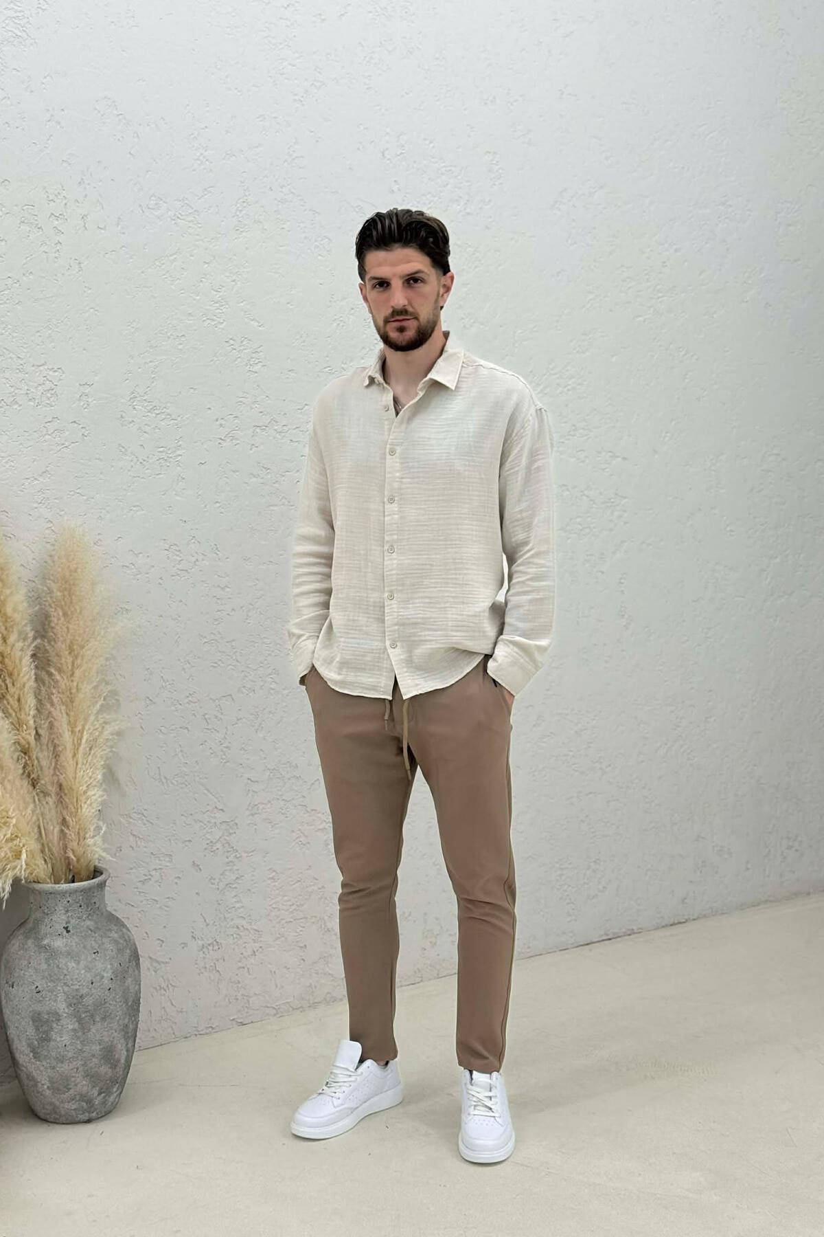 SIMPLE ONE COLOR MEN PANTS BEIGE/BEZHE