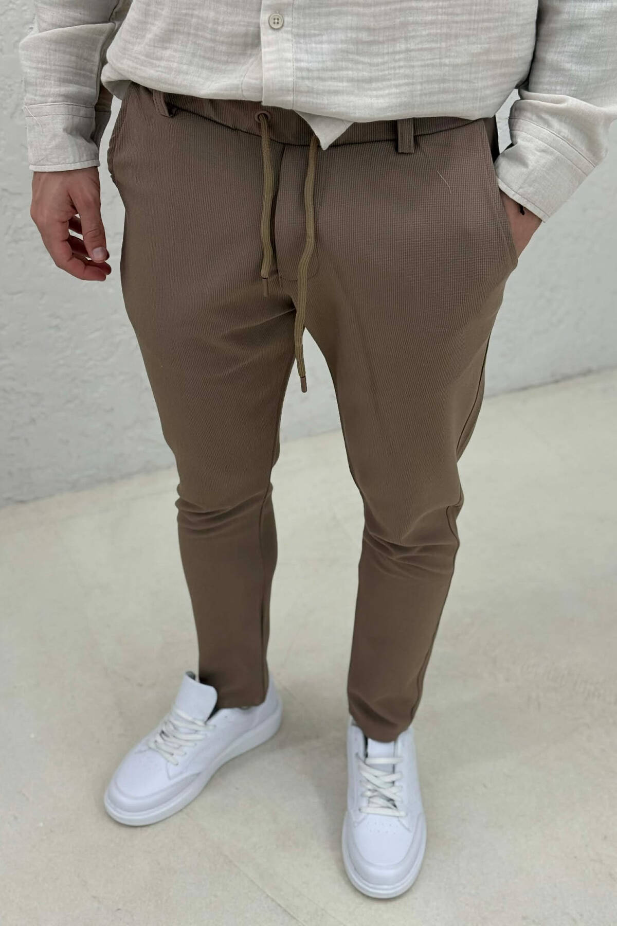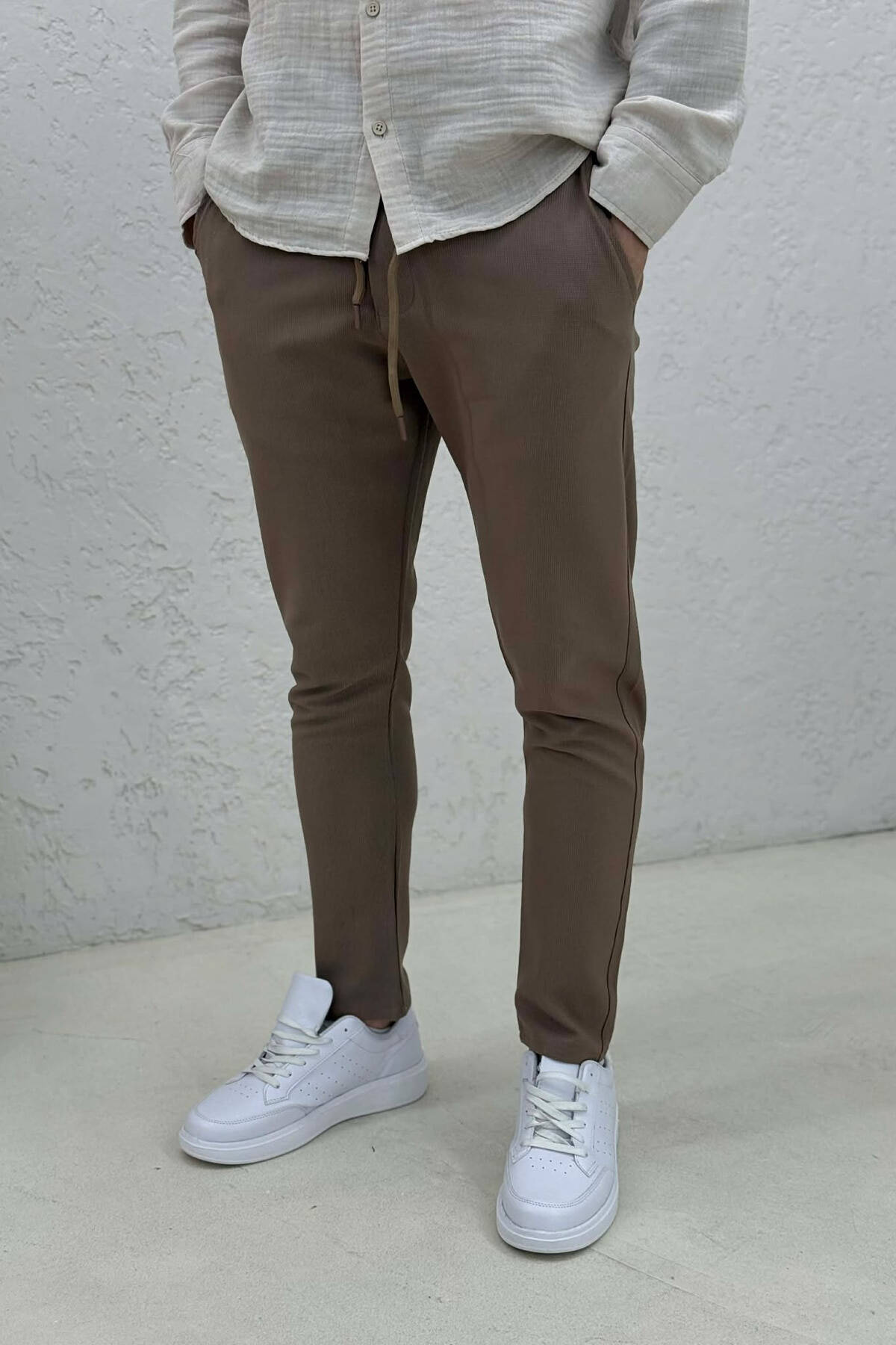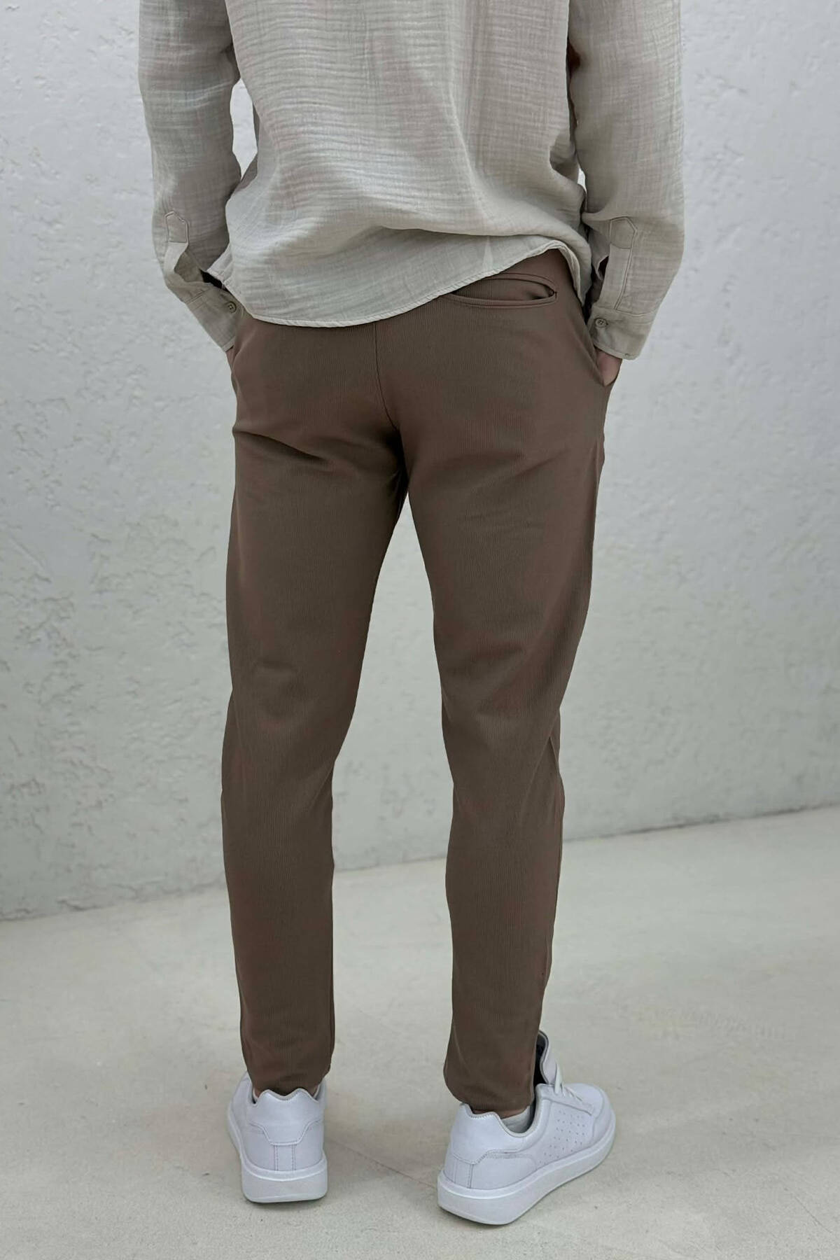 ONE COLOR ELASTIC WAIST MEN PANTS BROWN/KAFE