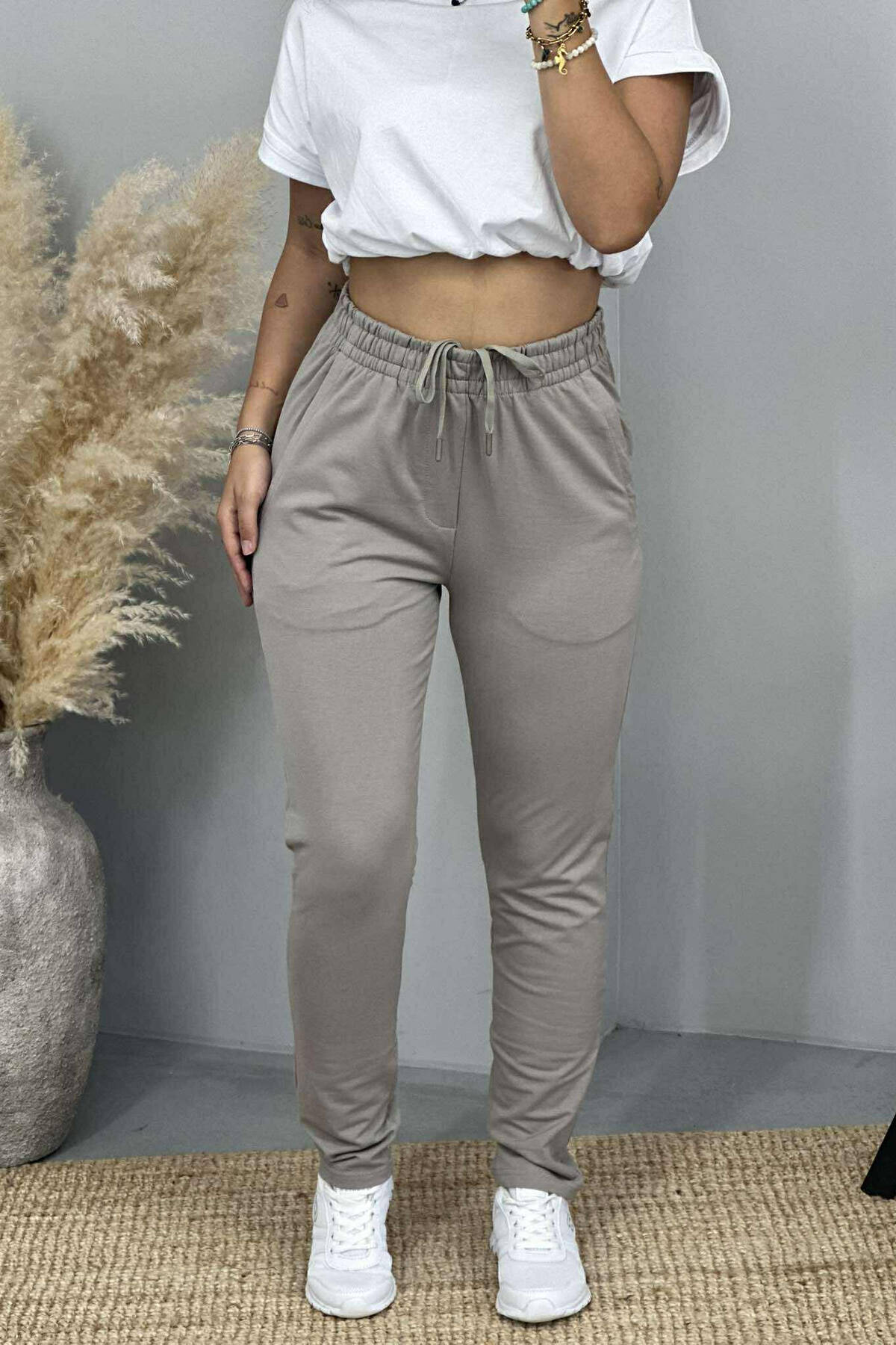 ONE COLOR ELASTIC WAIST SIMPLE WOMEN SWEATPANTS LIGHT GREY/GZ