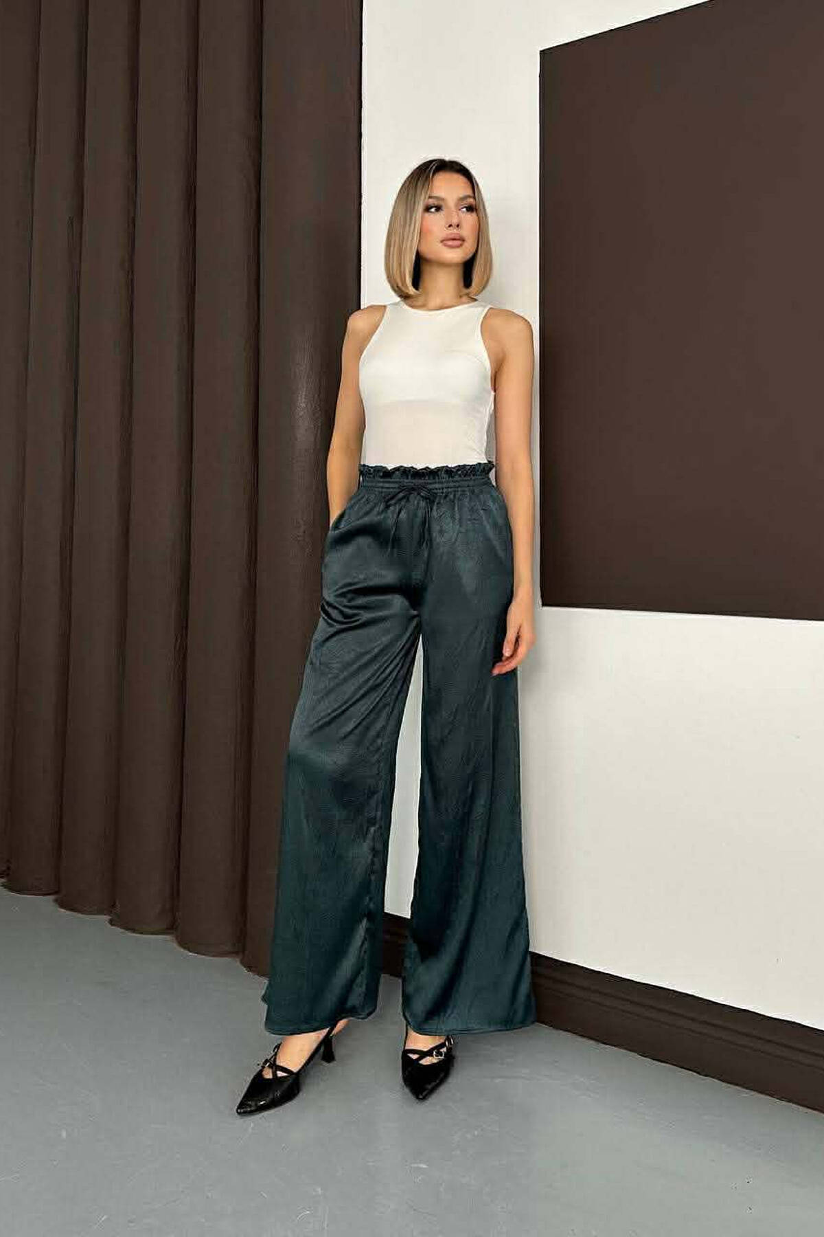 ELASTIC WAIST WOMAN TROUSERS GREEN/JESHILE