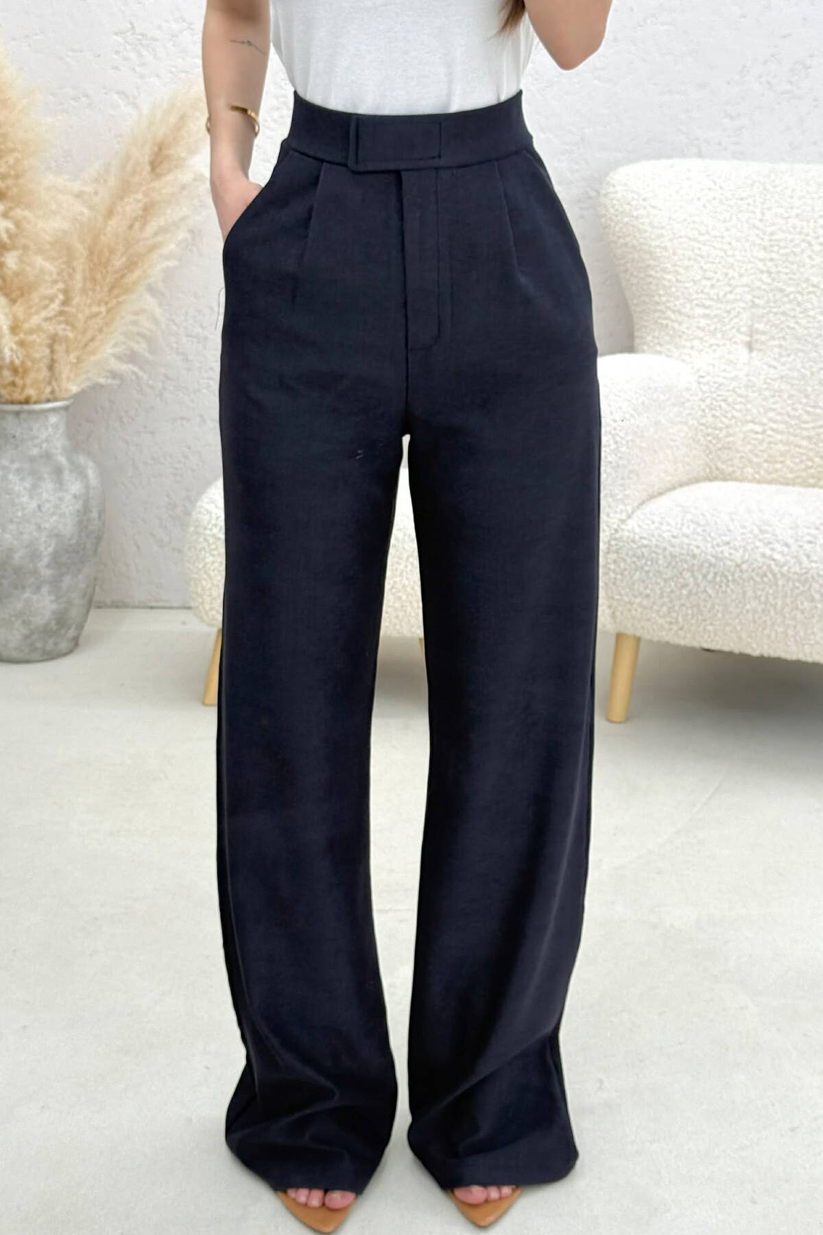 ONE COLOR BELT DETAIL WOMEN TROUSERS BLACK/ E ZEZE