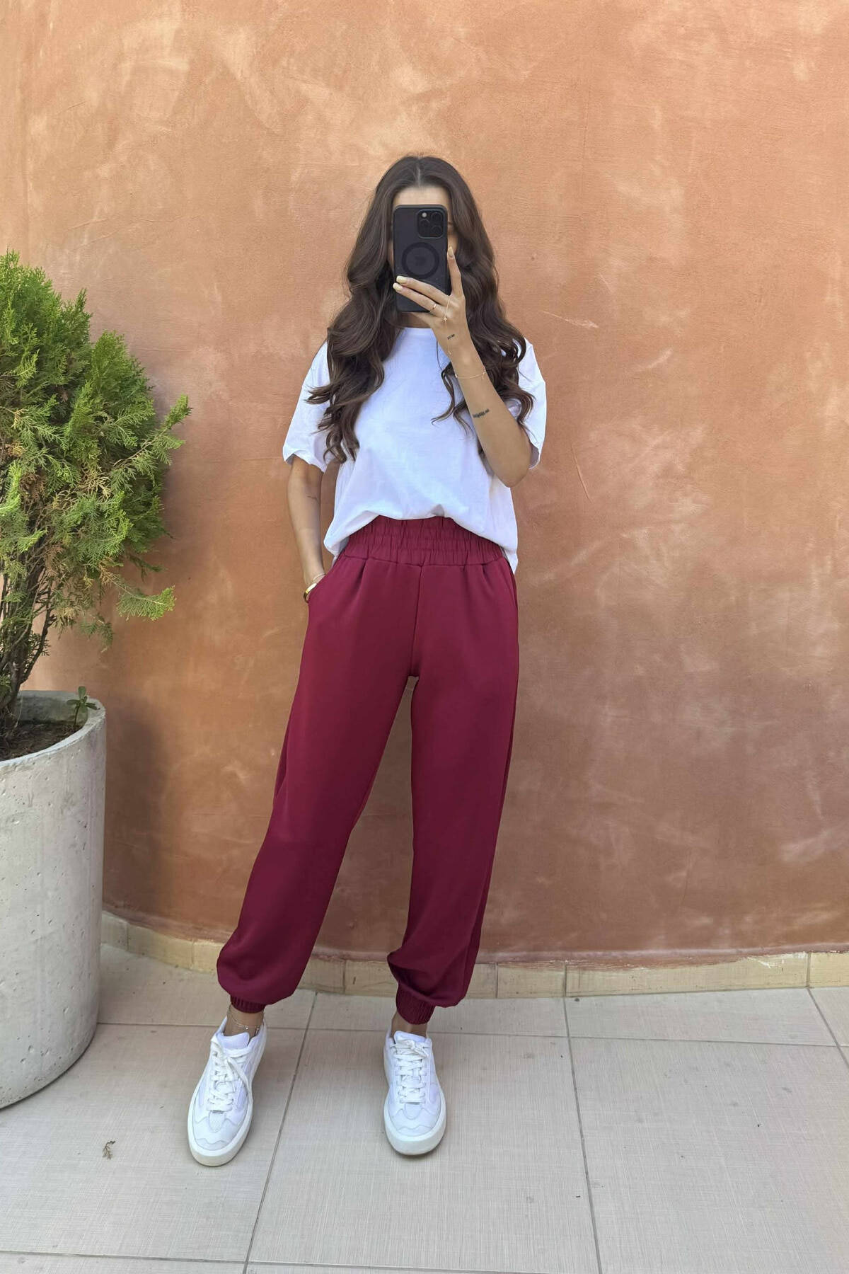 ONE COLOR ELASTIC WAIST WOMEN JOGGERS BURGUNDY/VISHNJE