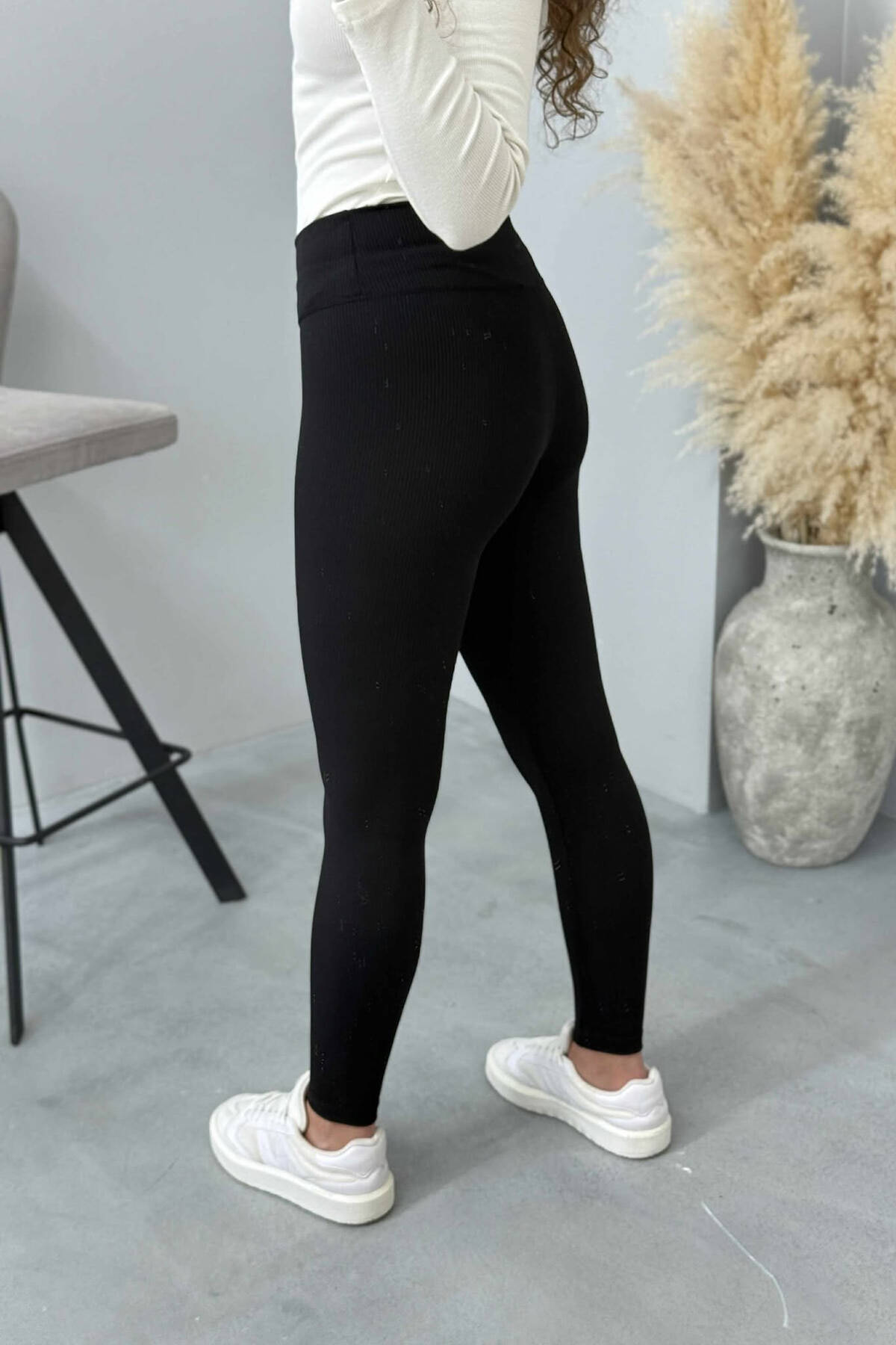 ONE COLOR ELASTIC WAIST WOMEN LEGGINGS BLACK/ E ZEZE